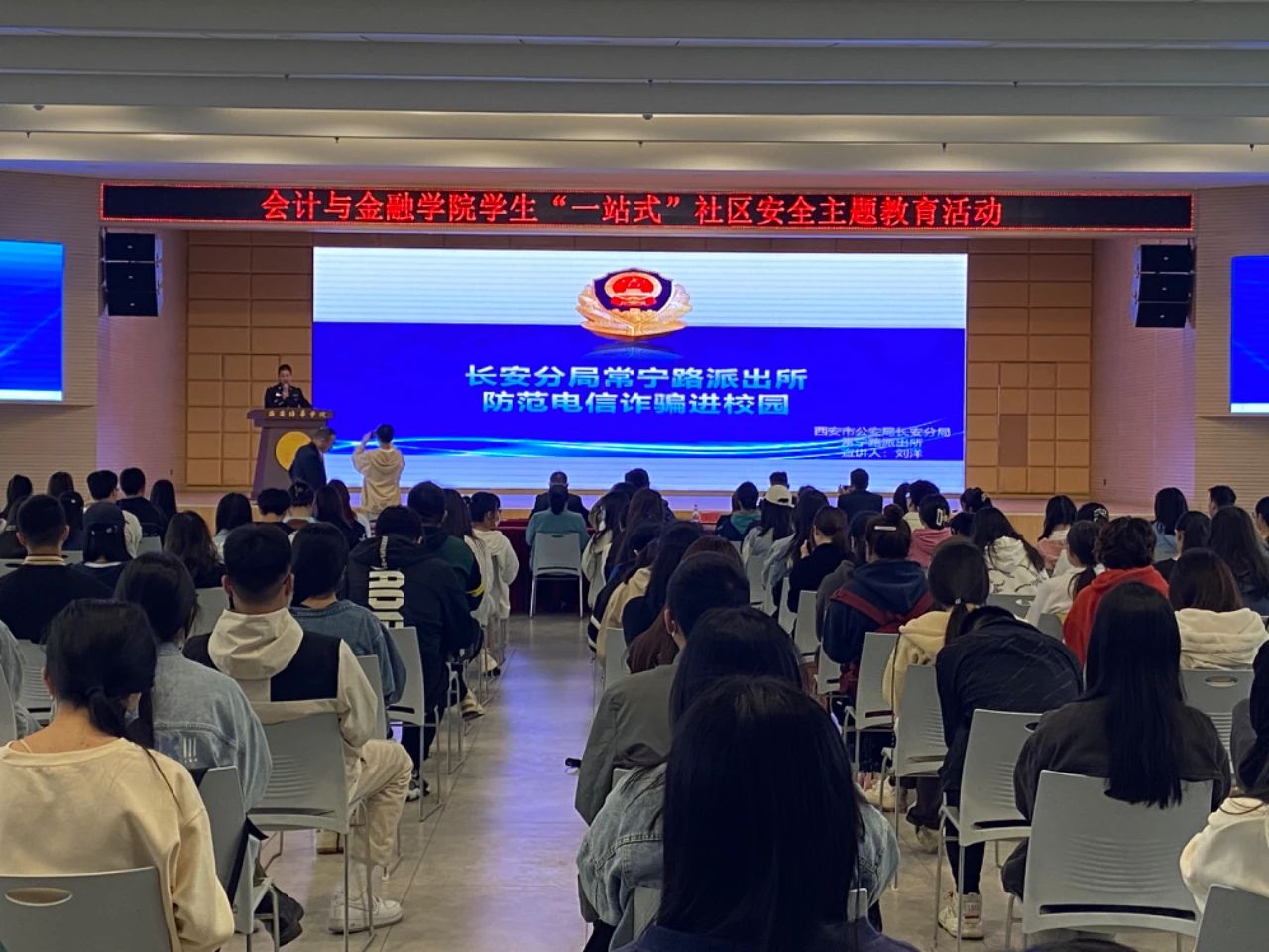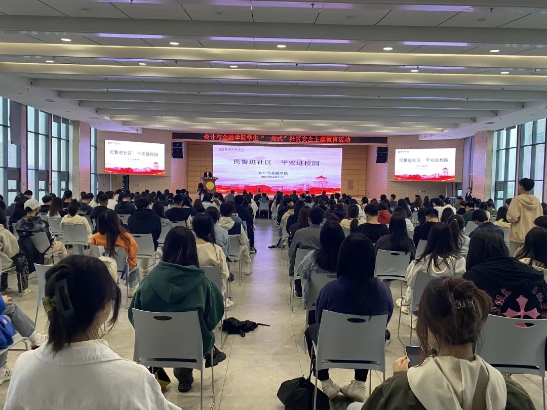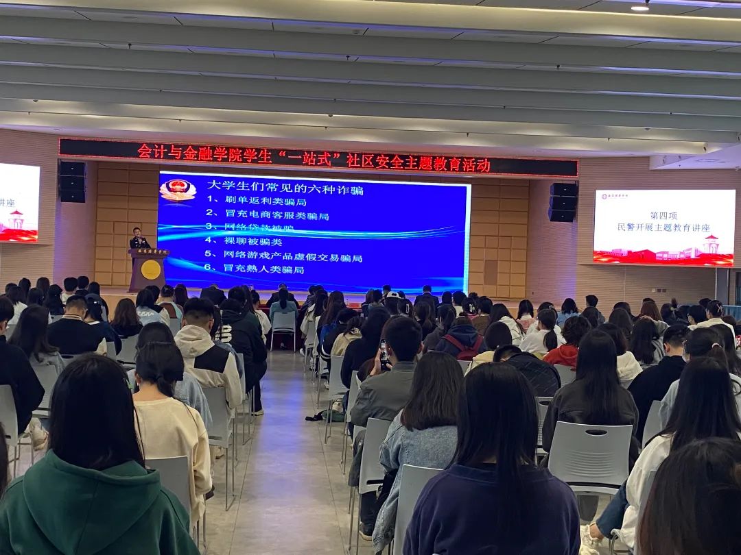 为进一步加强学院“一站式”学生社区建设,探索社区综合管理模式,持续深化教育教学改革,以服务学生在课堂之外的成长成才目的,完善网格化管理机制,将“一站式”学生社区建设成为党建的前沿阵地、“三全育人”的实践园地、平安校园的样板高地,切实提高学生们的防骗反诈意识和防火防盗安全意识,会计与金融学院联合西安市公安局长安分局常宁派出所开展了“民警进社区、平安进校园”安全主题教育活动。