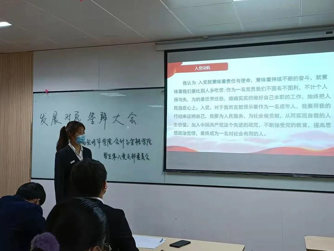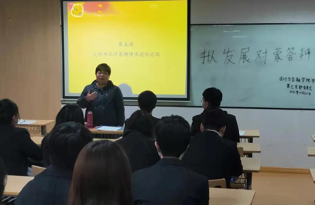 为了使党员拟发展对象端正态度、重视理论学习,进一步提高自身修养,增强党组织的工作透明度,使其为成为一个合格的共产主义接班人而做好充分准备,西安培华学院会计与金融学院各学生党支部于2021年10月18日至22日,在博远楼召开了关于拟发展对象答辩的支部主题大会,各学生支部书记、支部全体成员参加了会议。