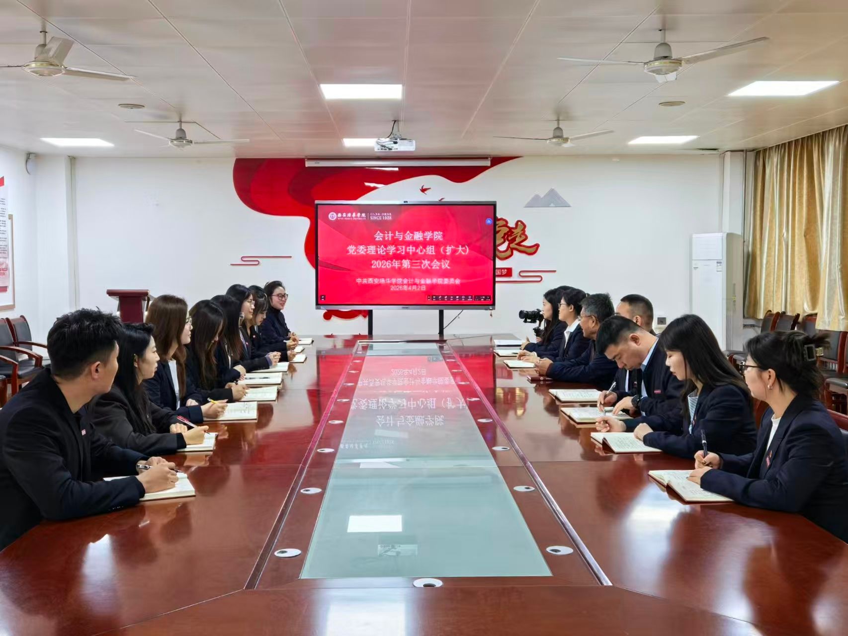2026年4月2日下午,会计与金融学院党委理论学习中心组(扩大)2026年第三次会议在博远楼2115会议室召开。学院领导班子成员、党委委员、各党支部书记参加会议,会议由学院党委书记兼行政副院长刘斌主持。