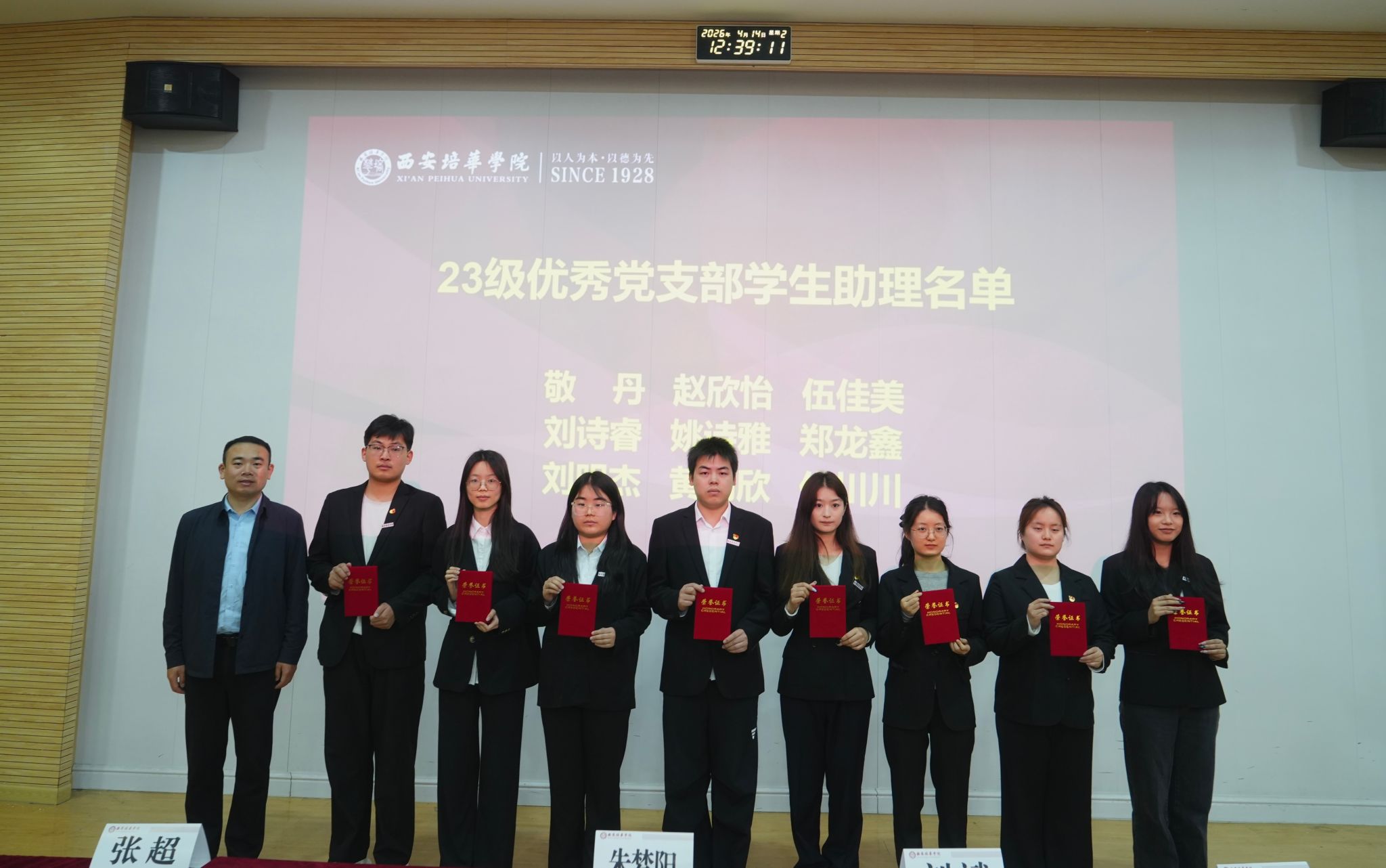 在热烈的掌声中,学院党委书记兼行政副院长刘斌为优秀党支部学生助理颁发荣誉证书,表彰他们在过去一年中为学院党建工作作出的突出贡献;随后,为新一届党委学生助理团全体成员颁发聘书,正式任命新一届成员开展工作。刘斌书记在总结讲话中,对2023级学生助理团的工作给予了高度评价,同时对新成员提出了殷切期望,鼓励大家以饱满的热情、务实的作风,在学生助理岗位上锤炼本领、服务同学,为学院党建工作高质量发展贡献青春力量。