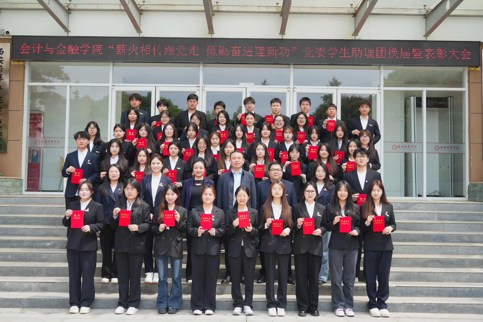 大会最后,全体参会人员合影留念,定格这一传承与奋进的重要时刻。本次换届暨表彰大会的顺利召开,不仅完成了学生助理团的新老交替,更凝聚了团队力量、明确了工作方向。未来,会计与金融学院党委学生助理团将以此次大会为新起点,薪火相传、砥砺奋进,以实际行动践行初心使命,为学院党建工作注入源源不断的青春动能。