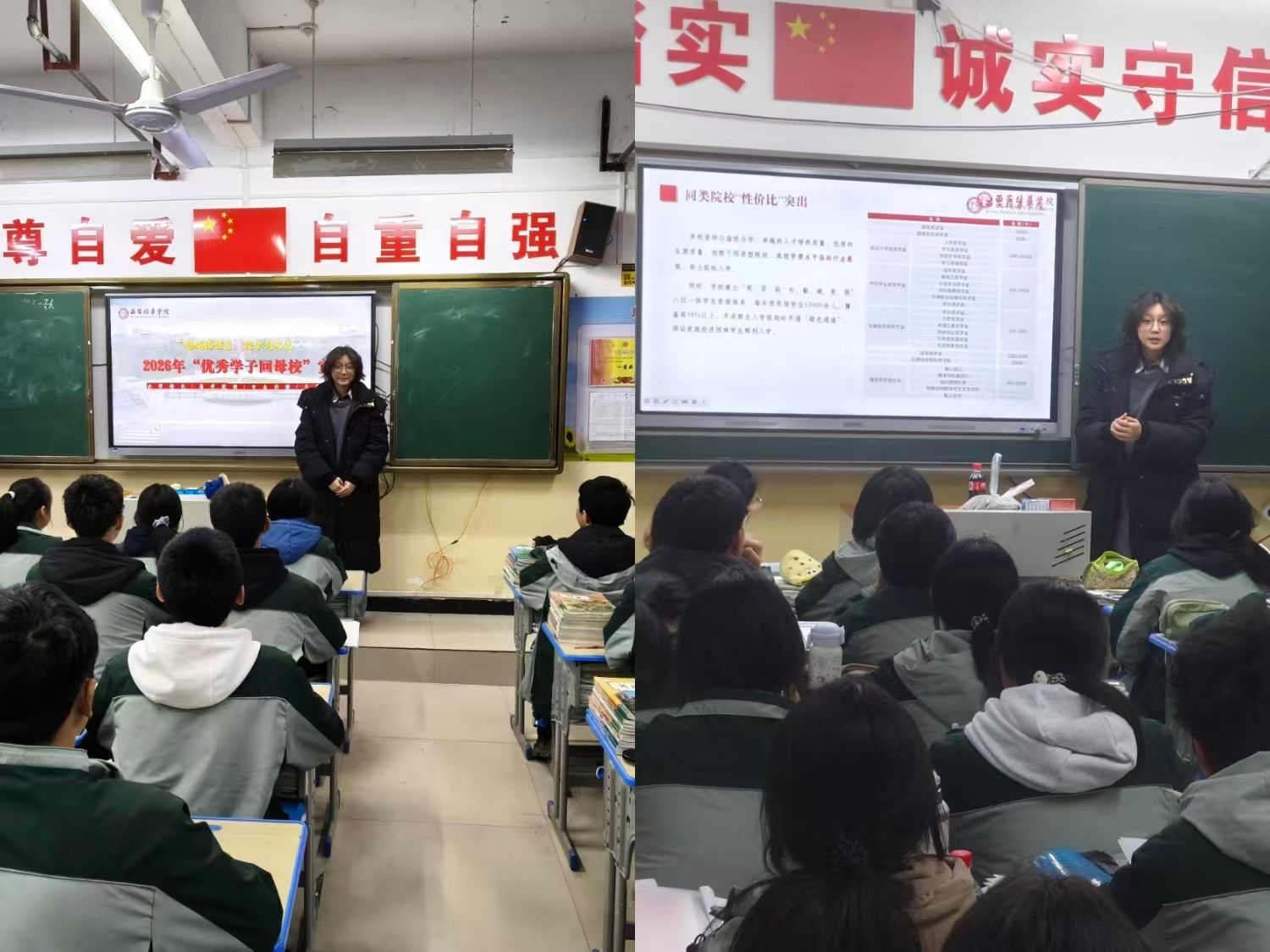 2026年1月12日,西安培华学院会计与金融学院的百年延传队队长林子怡在刘经纬、李丹霞、王迪老师的共同指导下,回到母校延安博文中学,开展“情系母校情,筑梦向未来”主题宣讲与互动交流活动。林子怡结合自身在西安培华学院的学习成长历程,向学弟学妹们细致介绍学校办学特色、学科专业建设优势,以及应用型人才培养的核心亮点,为同学们搭建起了解高校的有效桥梁。