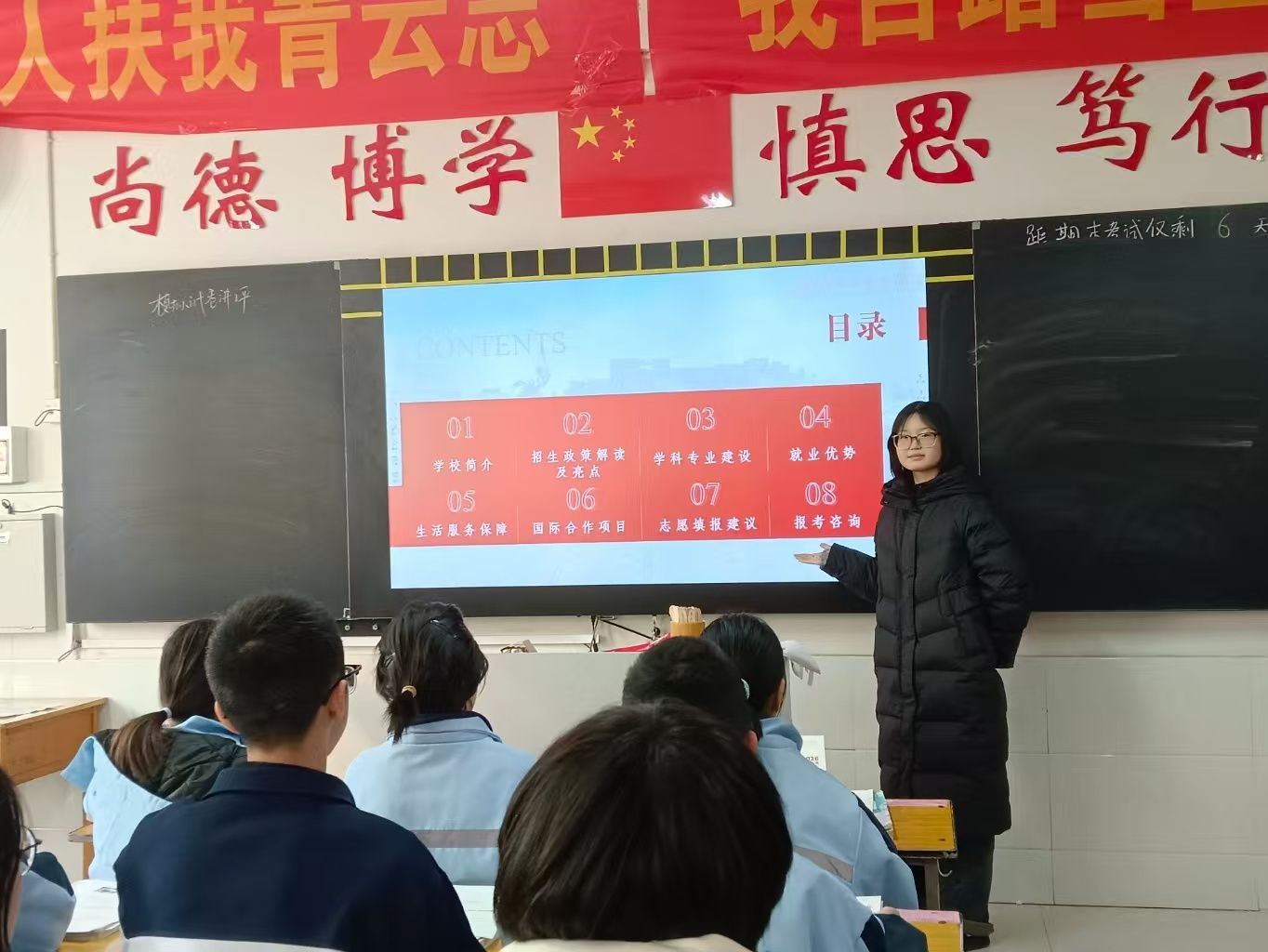 活动伊始,队员们向学弟学妹们介绍了西安培华学院的办学历史、特色专业与校园文化,通过生动的案例展示了西安培华学院在人才培养、学科建设等方面的优势。随后,队员们结合自身高中备考经历与大学生活感悟,分享了高效学习方法、心态调节技巧与志愿填报经验,从学科提分策略到职业规划建议,全方位为学弟学妹们答疑解惑。