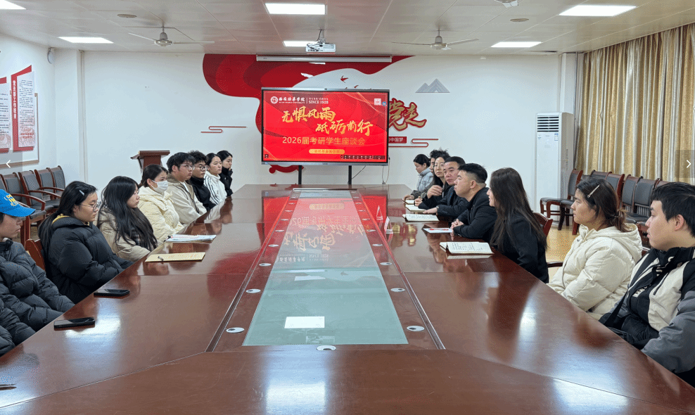 12月15日中午12:10,“无惧风雨,砥砺前行”主题师生座谈会在博远楼2115会议室举行。会计与金融学院党委书记兼行政副院长刘斌、党委副书记高乐、辅导员王苗,以及毕业班全体辅导员与2026届考研学生代表面对面交流,倾听学子心声,共话考研冲刺。