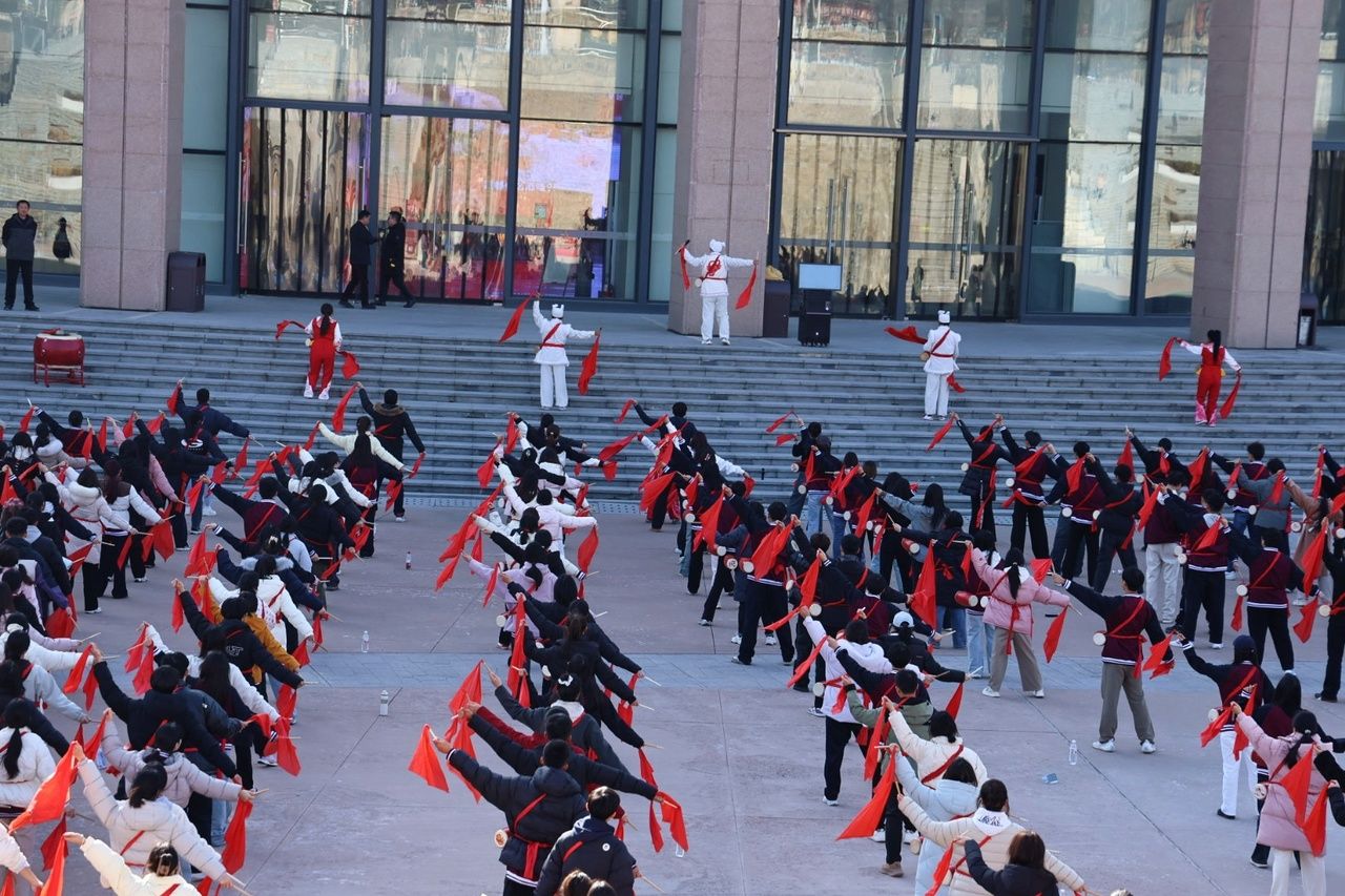 老师和同学们实地体验陕北腰鼓,鼓点的脆响和红绸的甩动尽显陕北人民的豪迈与热情,在传承传统文化中那股不惧艰难、昂扬向上的劲头,深深感染了现场的所有人,也让同学们明白传统文化之所以能传承,正是因为它承载着民族的魂与骨。