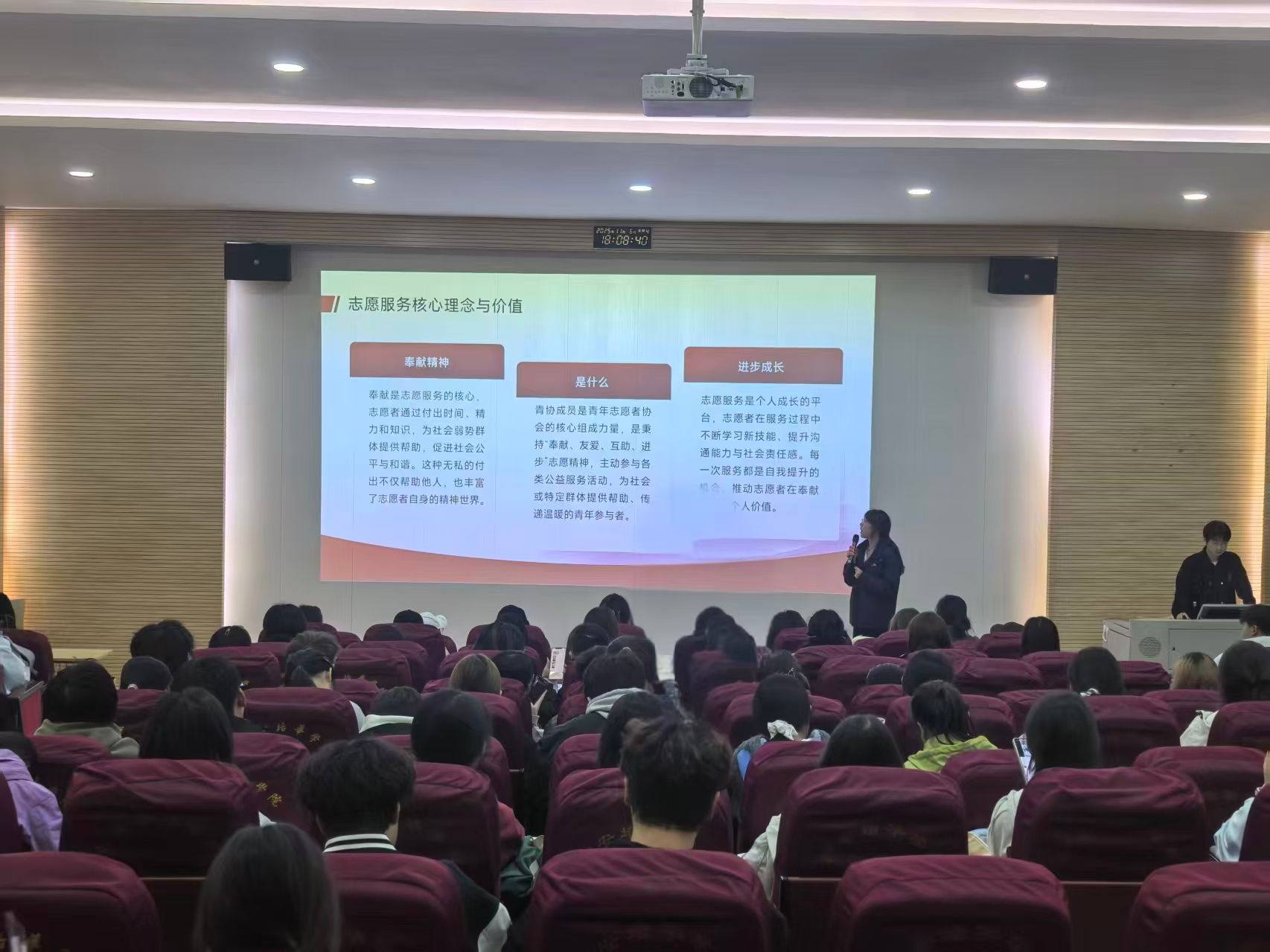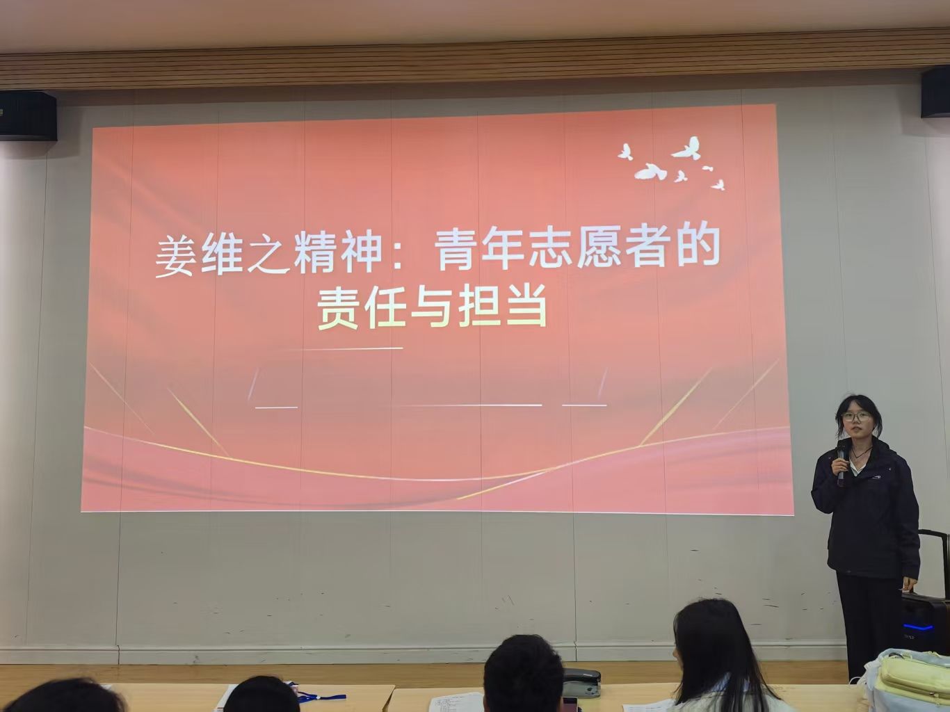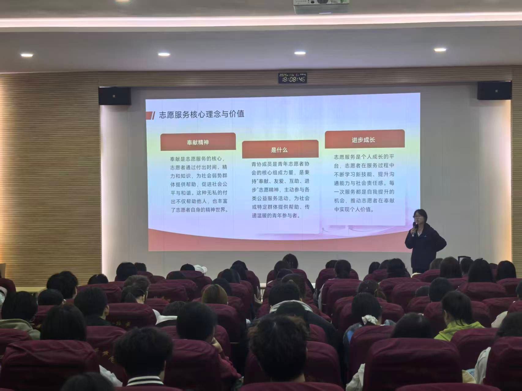 青年志愿者协会在团委副书记兼青年志愿者协会指导老师田晨统筹下,以“姜维之精神”为指引,第一期举办“责任与担当”主题培训;第二期开展“礼仪与服务规范”专项实训,实现“培训一人、带动一班、辐射一院”的倍增效应。