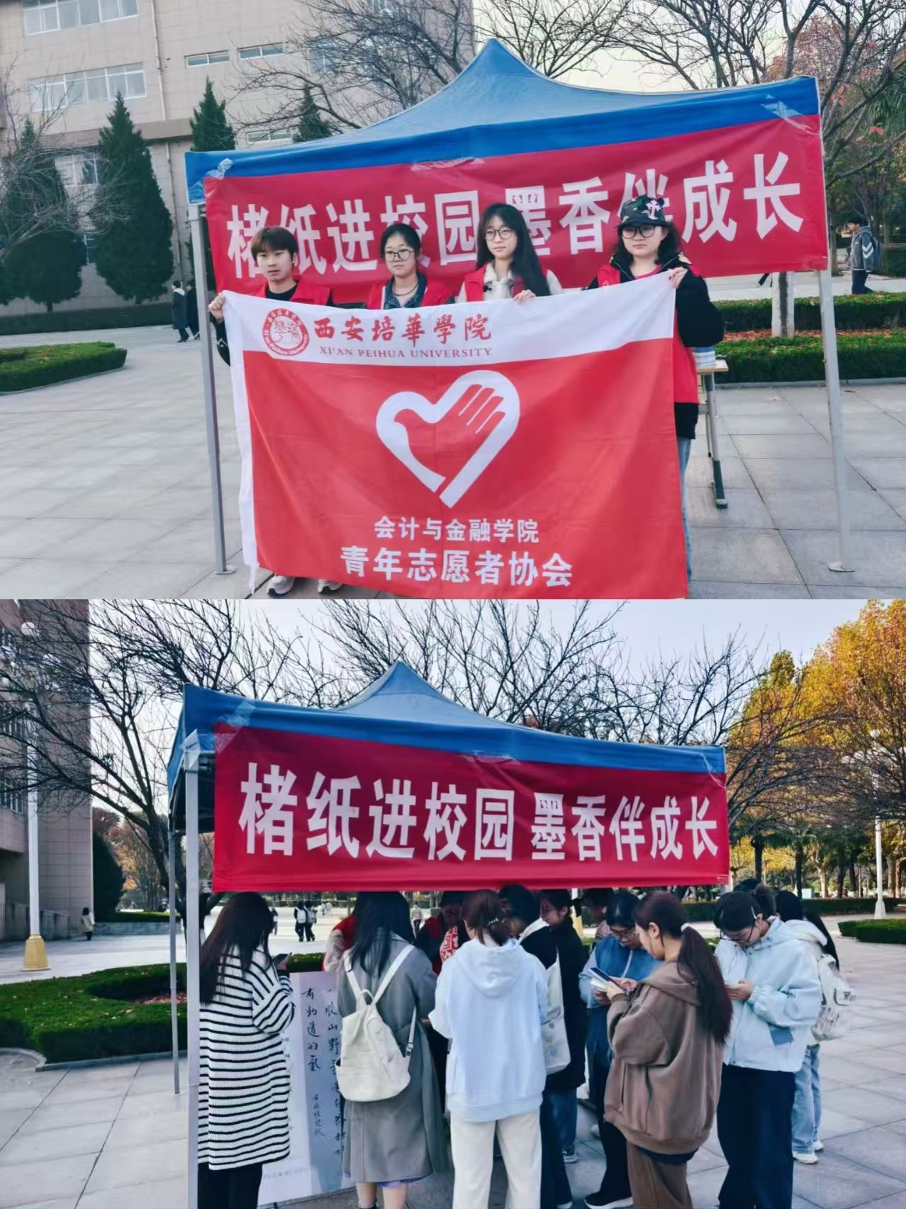 为让非遗文化焕发青春活力,让楮皮纸工艺走进青年群体,2025年11月13日,西安培华学院会计与金融学院青年志愿者协会与楮心筑梦队在综合楼西广场联合举办“楮纸进校园,墨香伴成长”主题活动,双方分工协作,为师生呈现了一场沉浸式非遗文化盛宴。