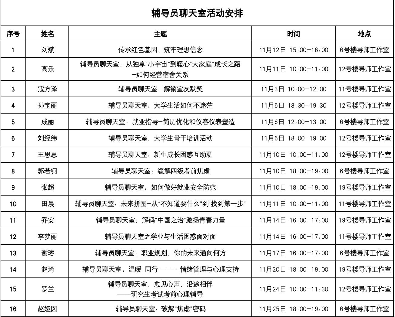 与传统严肃的座谈会不同,“辅导员聊天室”将营造一个轻松愉悦的氛围。温馨舒适的环境布置、亲切随和的交流方式,让学生们能够放下顾虑,毫无保留地分享自己的想法和感受。在这里,没有师生之间的距离感,只有朋友般的真诚交流和相互理解。