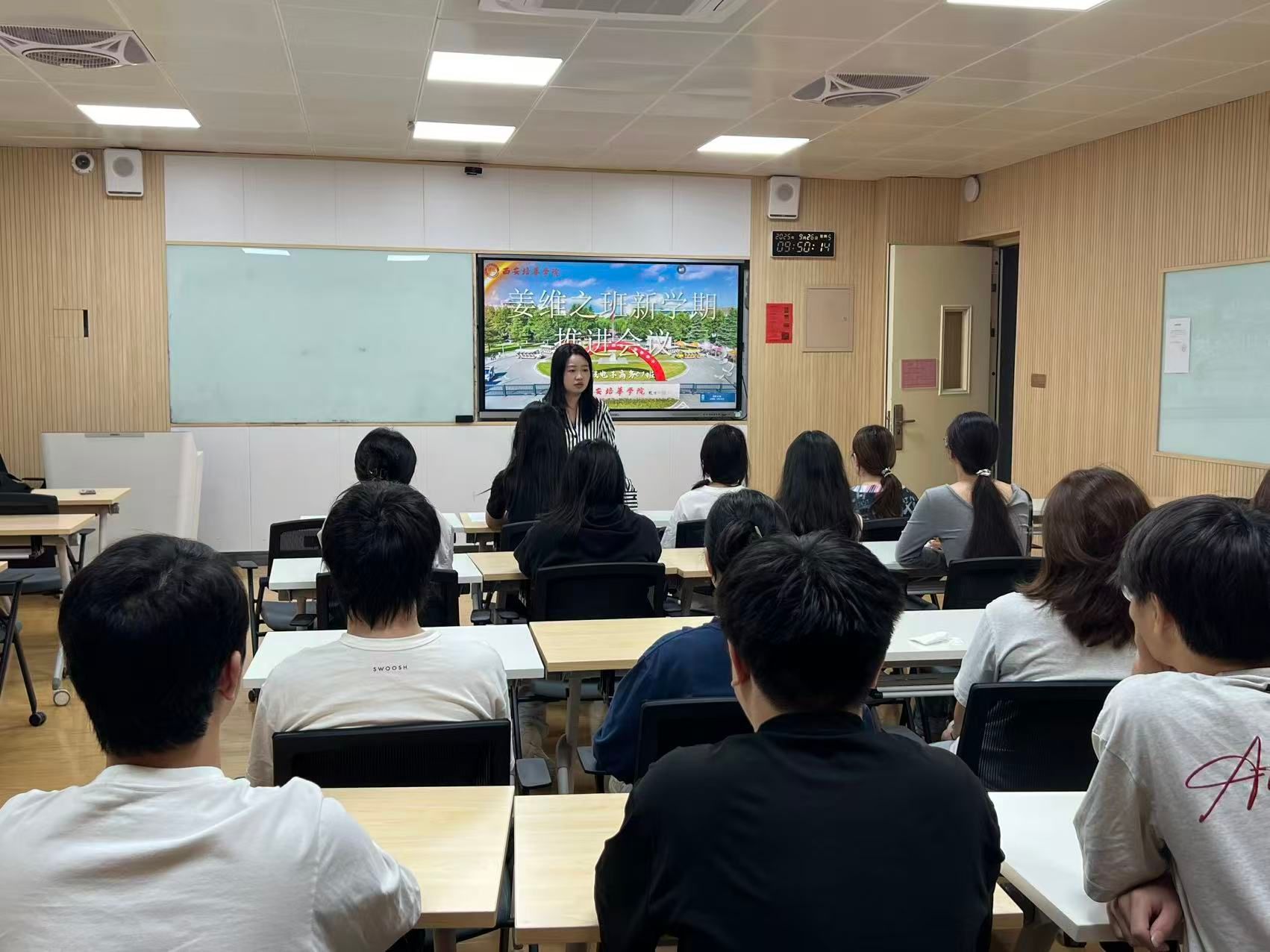 为进一步落实班级建设规划,2022人力资源管理01班召开“姜维之班”推进会议。会议由辅导员主持,全体同学积极参与。会上,高钰同学代表班级汇报了近期班级创建的情况。针对班级存在的问题,同学们展开热烈讨论,提出了多项切实可行的改进建议,如优化学习小组分工、丰富班级文化活动等。张超老师对下一步工作进行部署,强调要注重团队协作与个人成长相结合,提升班级整体风貌。此次推进会议明确了班级发展方向,增强了同学们的责任意识,为班级各项工作的高效推进提供了有力保障。