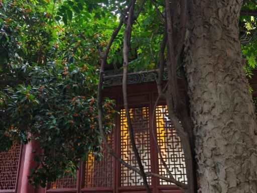 夕阳的余晖从树叶间露出,把地面铺成一片金黄,沐浴着秋日的暖阳,走在石板路上,连脚步也染上了丝丝暖意。