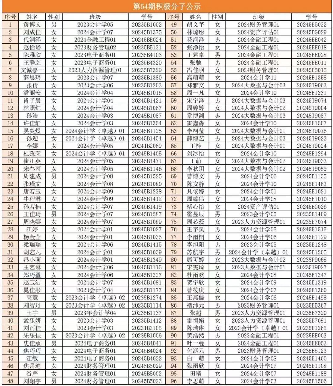 入党积极分子名单