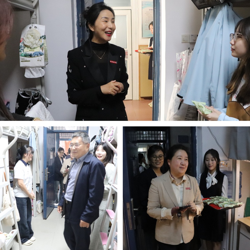 2025年9月29日中午12点,为迎接即将到来的中秋佳节,西安培华学院副校长、党委副书记姚文静带领会计与金融学院院长吴旺延,院长助理吴春娜,教学副院长孟君,院党委副书记高乐,办公室主任周嫚,以及辅导员代表和学生代表,走进学生社区开展中秋慰问活动,为留校学生送上节日的祝福与温暖的关怀。
