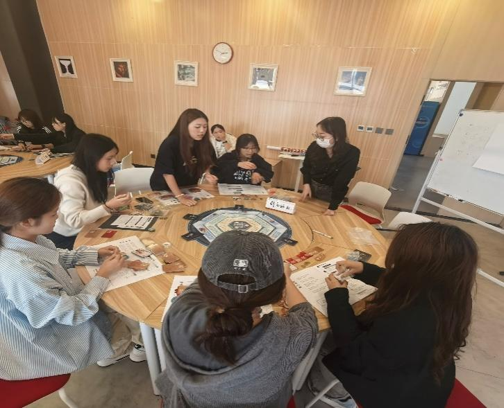 活动伊始,同学们按要求分组、自我介绍,起好组名之后便开始了此次穿越之旅。江老师介绍了沙盘中各个道具的使用方法,每位同学在选择自己的“修行角色”后沙盘体验正式开始。整个活动分为四个部分:初探学府、渐入佳境、深造精进和登峰造极。同学们根据江老师的讲解开始了一轮轮“策行令”的任务,有人果断执行,有人选择观望,每一步都像现实中的决策一样,牵动着“未来”的走向。每轮体验结束,江洁老师都会邀请同学们分享体验感受,让此次活动不仅是“玩”,更是“想”。