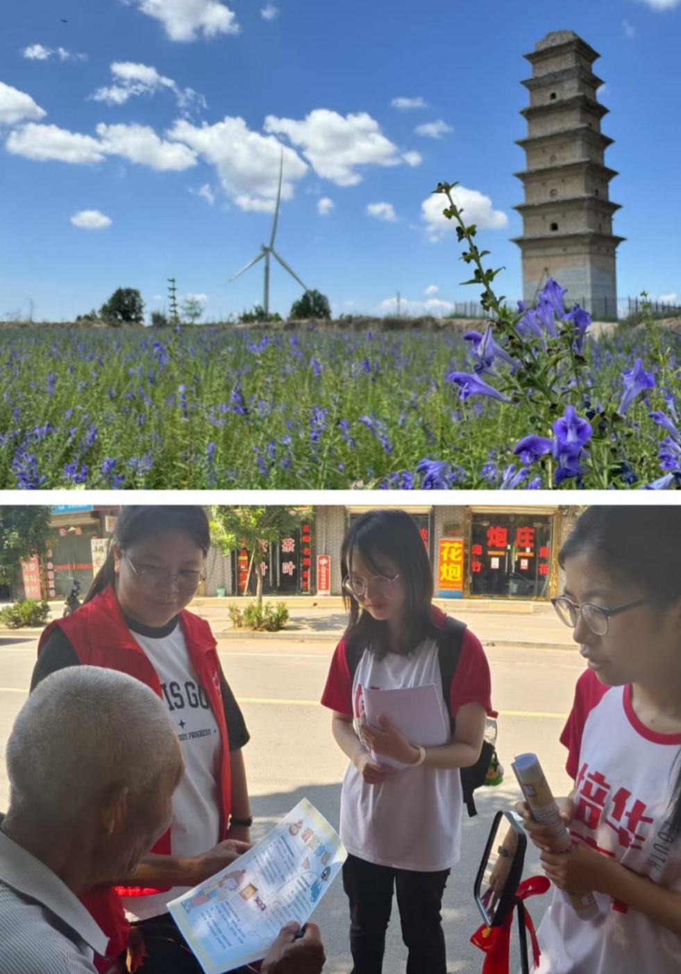 药材田间孕育着沉甸甸的希望,队员们走进种植黄芪、柴胡的地块,与农户攀谈,在学习除草施肥的田间实践中,慢慢读懂了一锄一犁背后的“土地经济学”。金融知识也循着乡路走进村落,队员们将宣传单变成生动的“防诈指南”,用接地气的方言和身边案例教村民守好“钱袋子”,为乡村经济安全发展添砖加瓦。罗山寺塔下,青砖的斑驳纹路与田间的盎然新绿交相辉映,在这场跨越时空的古今对话中,静静见证着文化传承与产业振兴在这片土地上的共生共荣。