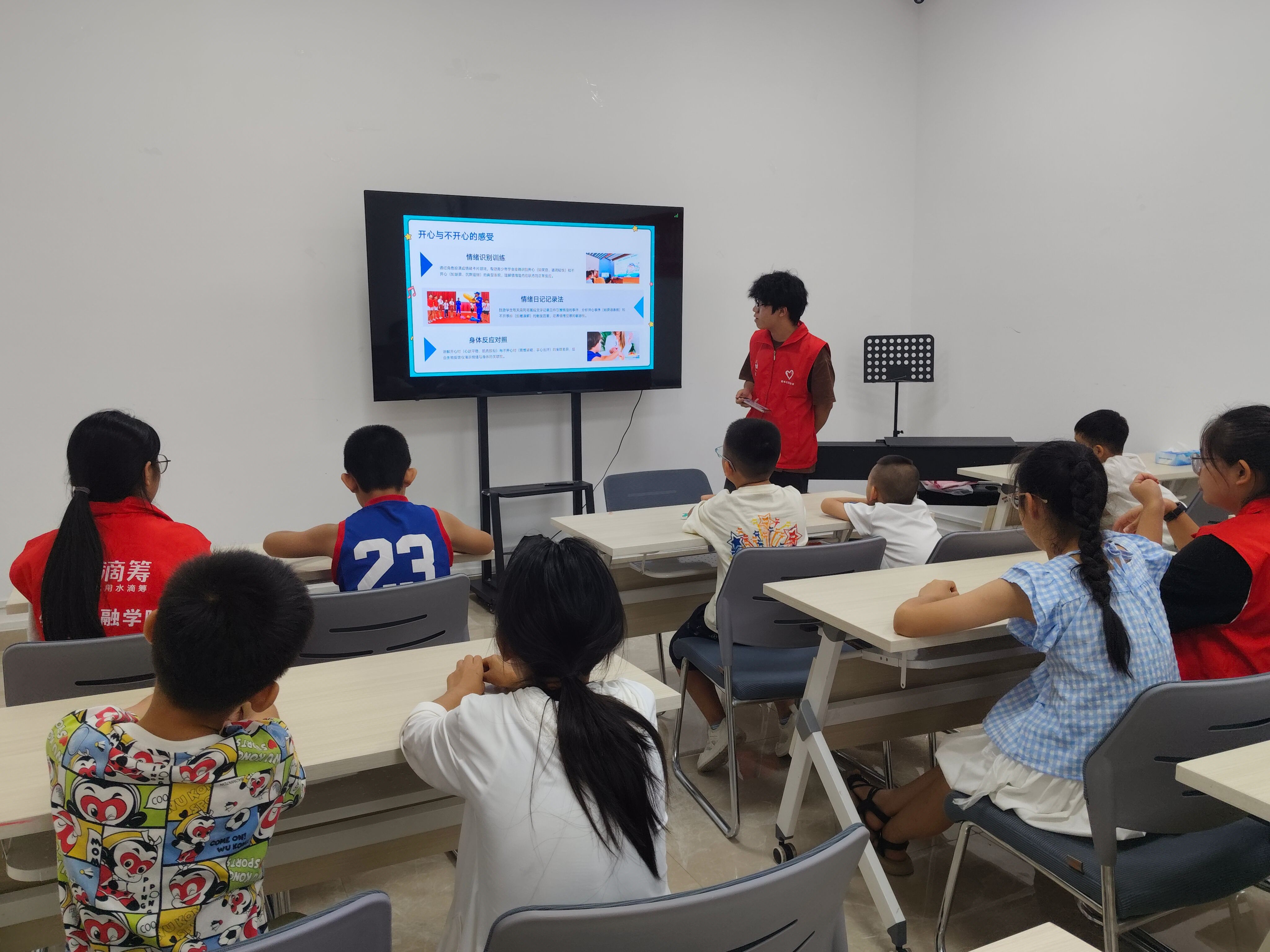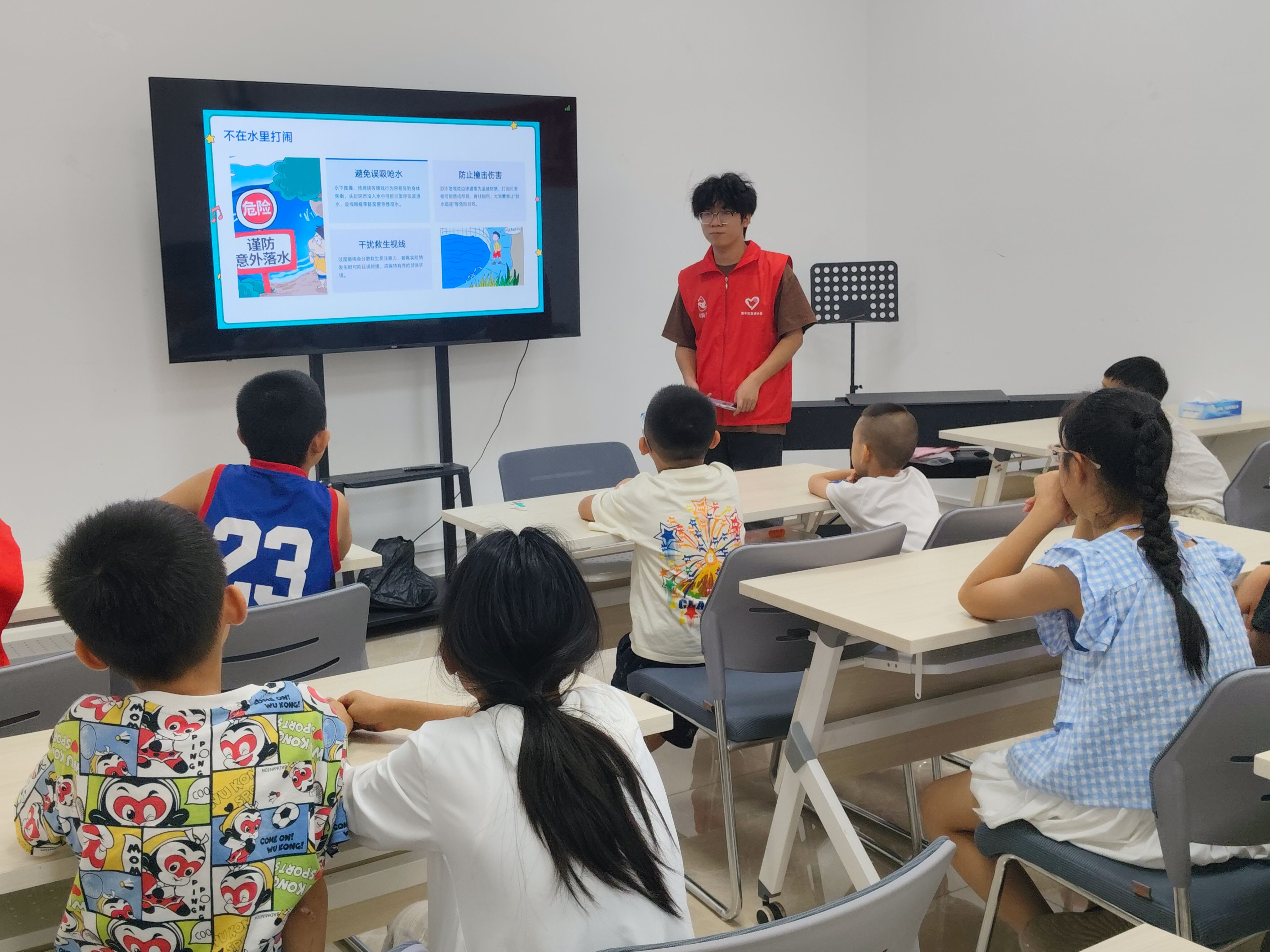 7月15日下午,灞业大境社区托管中心的教室内气氛热烈,楮心筑梦队志愿者在此开展防溺水安全课程。30余名小朋友参与其中,在成员刘佳遥的带领下,通过案例讲解、情景模拟和互动游戏等形式,系统学习溺水预防与急救知识,为即将到来的暑期安全增添保障。