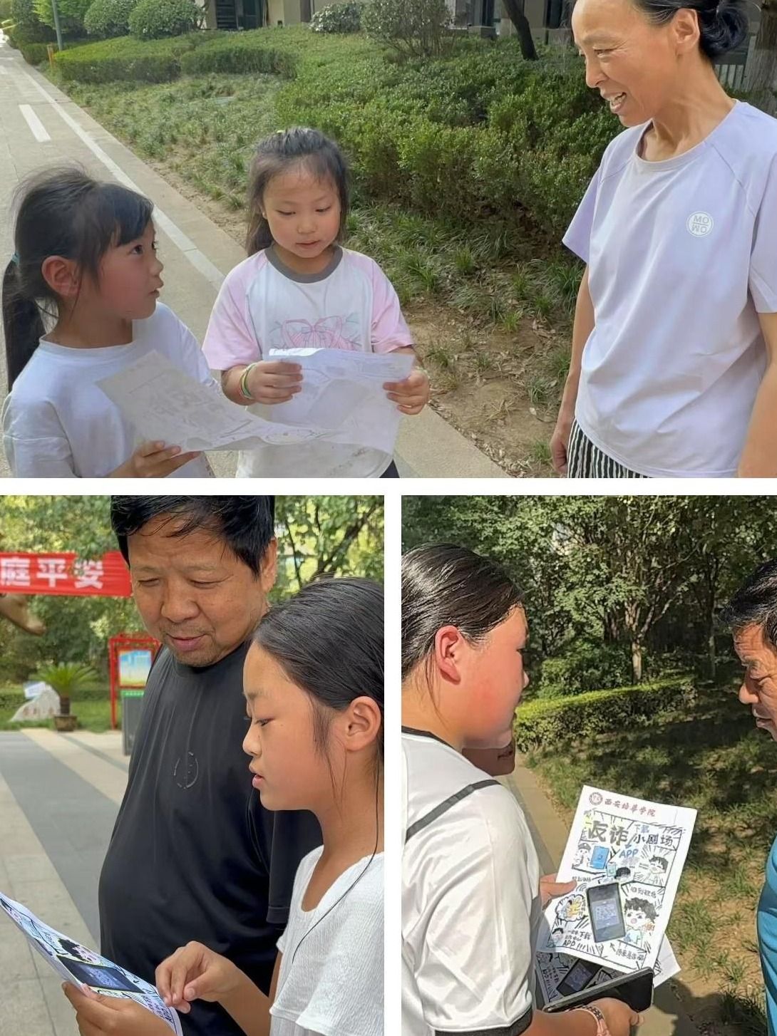 面对孩子们认真的讲解,社区居民们纷纷驻足倾听,不少老人还主动拉住小宣传员询问细节,现场互动频繁、氛围热烈。社区居民也表示这种宣传更通俗易懂,活动现场设置的互动问答环节,更是让孩子们与居民在轻松交流中加深了对防诈知识的理解,让“不轻信、多核实”的意识悄悄扎根。
