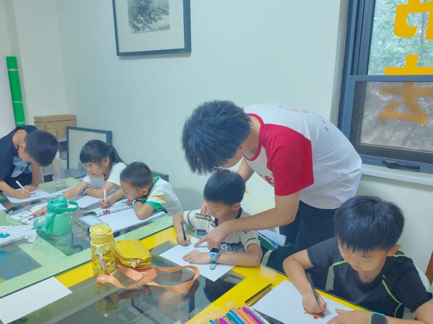 下午的美术课上,队员罗鸿洋带领孩子们走进了色彩与创意的世界。以“我的快乐一天”为主题,他鼓励孩子们发挥想象,用画笔描绘心中的美好场景。他耐心指导孩子们运用色彩搭配与构图技巧,从线条勾勒到上色填充,每个孩子都专注投入,创作出充满童真与个性的作品。课堂上,孩子们相互交流想法,分享创作灵感,在艺术实践中感受美、创造美。