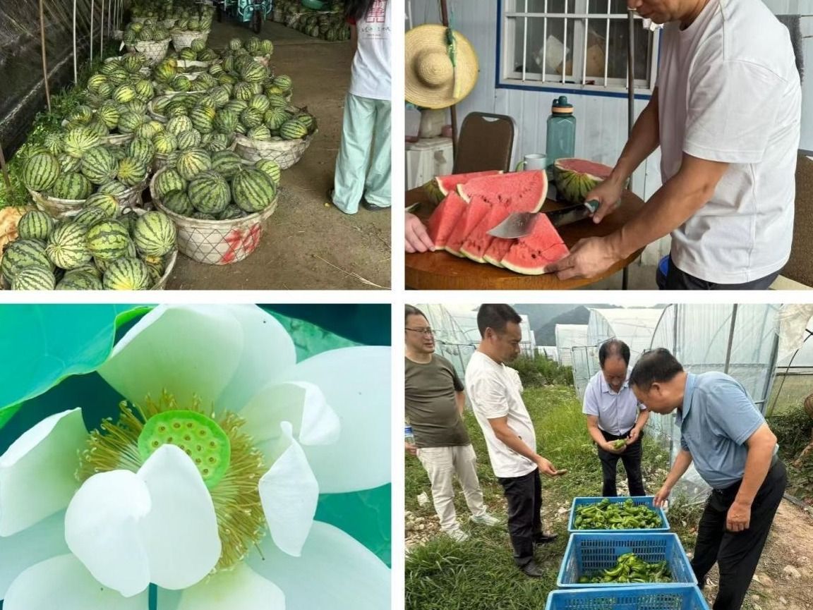 在农副产业园的田野间,队员们先后探访枞岭、五星村、沙坝村、中营村四站。枞岭的李子压弯枝头,沙坝村的茄子辣椒铺成彩色田垄,队员们亲手采摘时,才体会到“一粥一饭,当思来之不易”的深意。五星村的西瓜大棚里,温控设备让产量翻倍,农户口中的“科技+合作社”模式,展现传统农业的新生机;中营村的荷塘更藏着“一水三用”的巧思——荷花观赏、莲蓬售卖、荷塘垂钓,“一朵花挣三份钱”的生态模式,让队员们触摸到乡村振兴的鲜活脉搏。