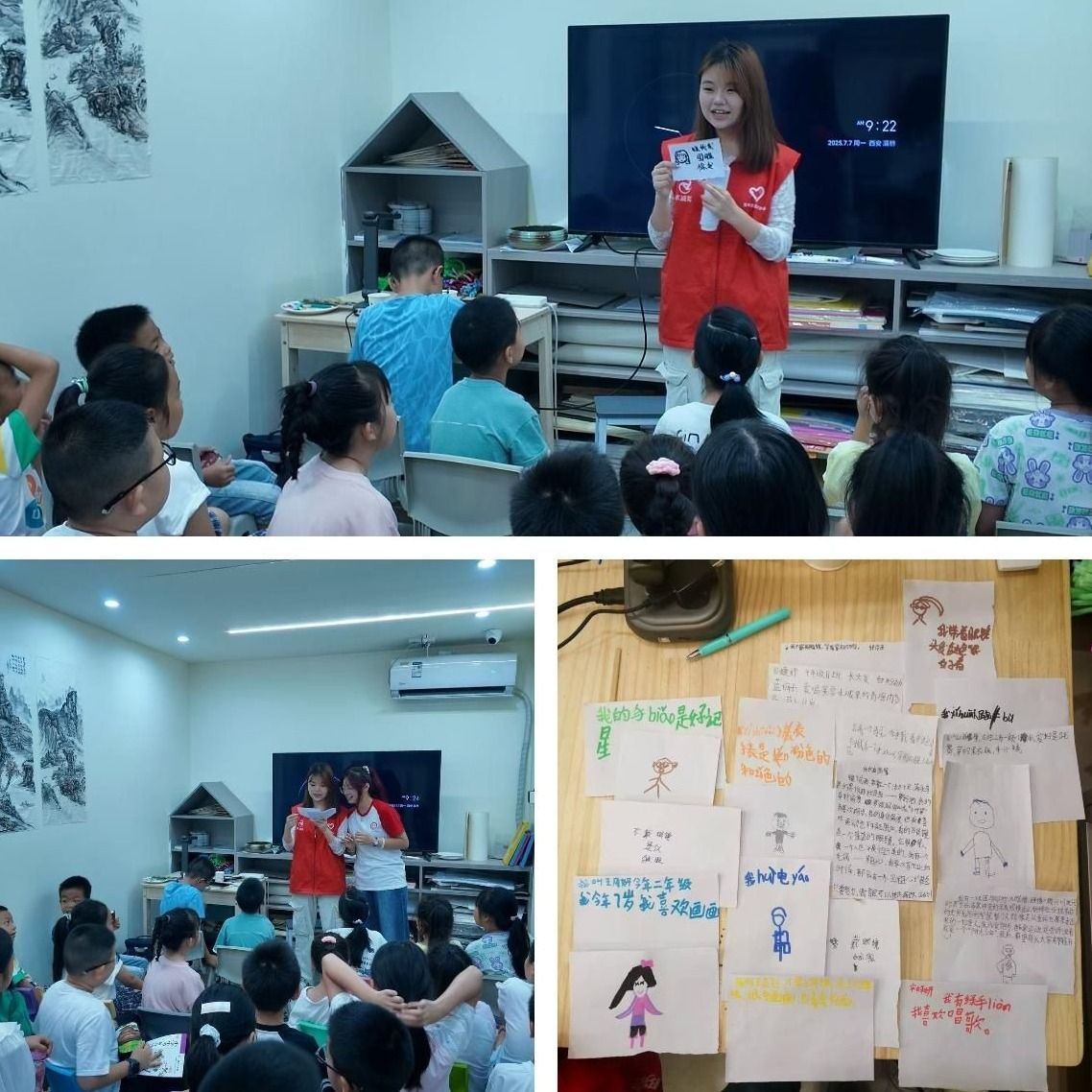 初见时的拘谨,在“名字猜猜猜”的游戏中悄然消散。孩子们围坐成圈,队员们化身“出题人”,用细节描述引导大家辨认:“他头发卷卷的,还戴着眼镜——是谁呀?”话音未落,扎着羊角辫的小姑娘便高高举手:“是小罗老师!”答对后的欢呼雀跃里,名字不再是冰冷的符号,而是成了连接彼此的纽带。一场小游戏,不仅破冰成功,更在欢笑中播下了信任的种子。