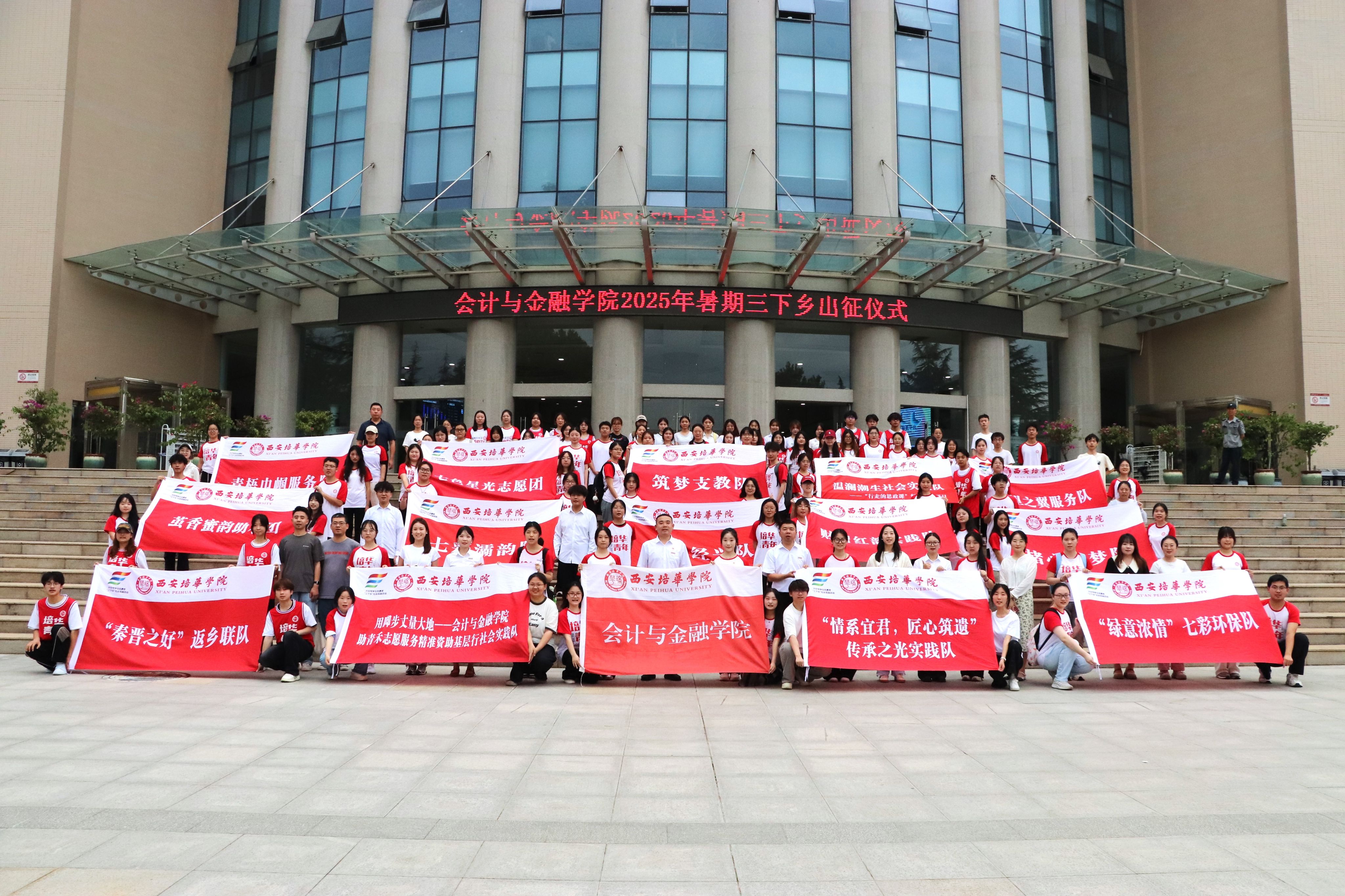 2025年7月1日,会计与金融学院暑期三下乡出征仪式在博远楼隆重举行。会计与金融学院党委书记兼行政副院长刘斌、会计与金融学院党委副书记高乐、会计与金融学院团委书记刘经纬、各团队指导老师出席此次出征仪式。