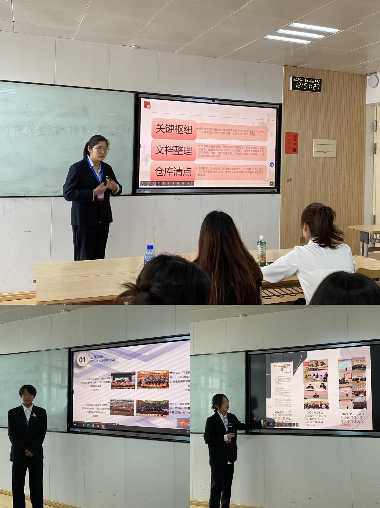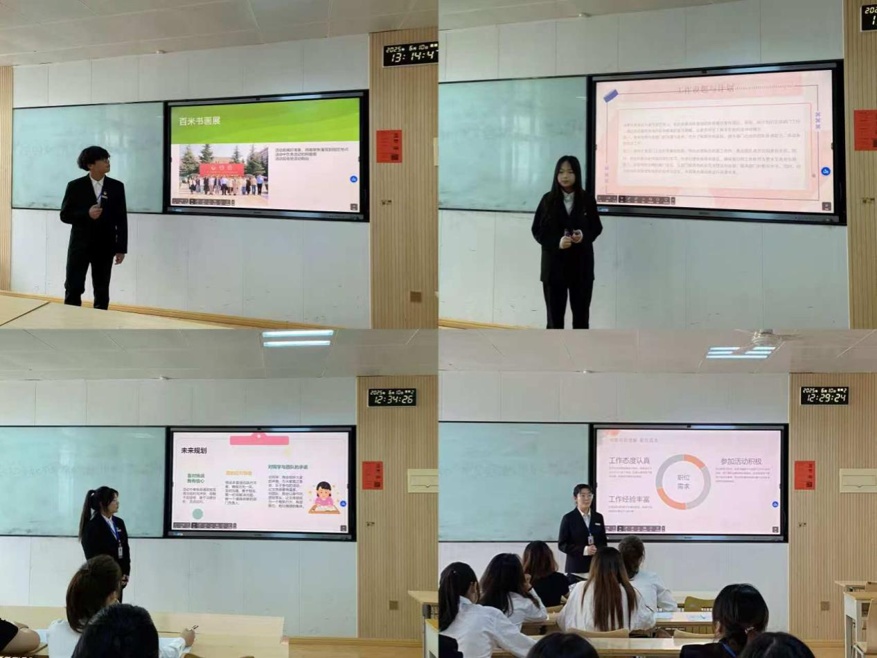 答辩现场,竞选的同学们自信大方,演讲时结合自身经历,阐述岗位理解、分享竞选初衷并规划未来工作。面对提问,他们冷静应答,表现出色。