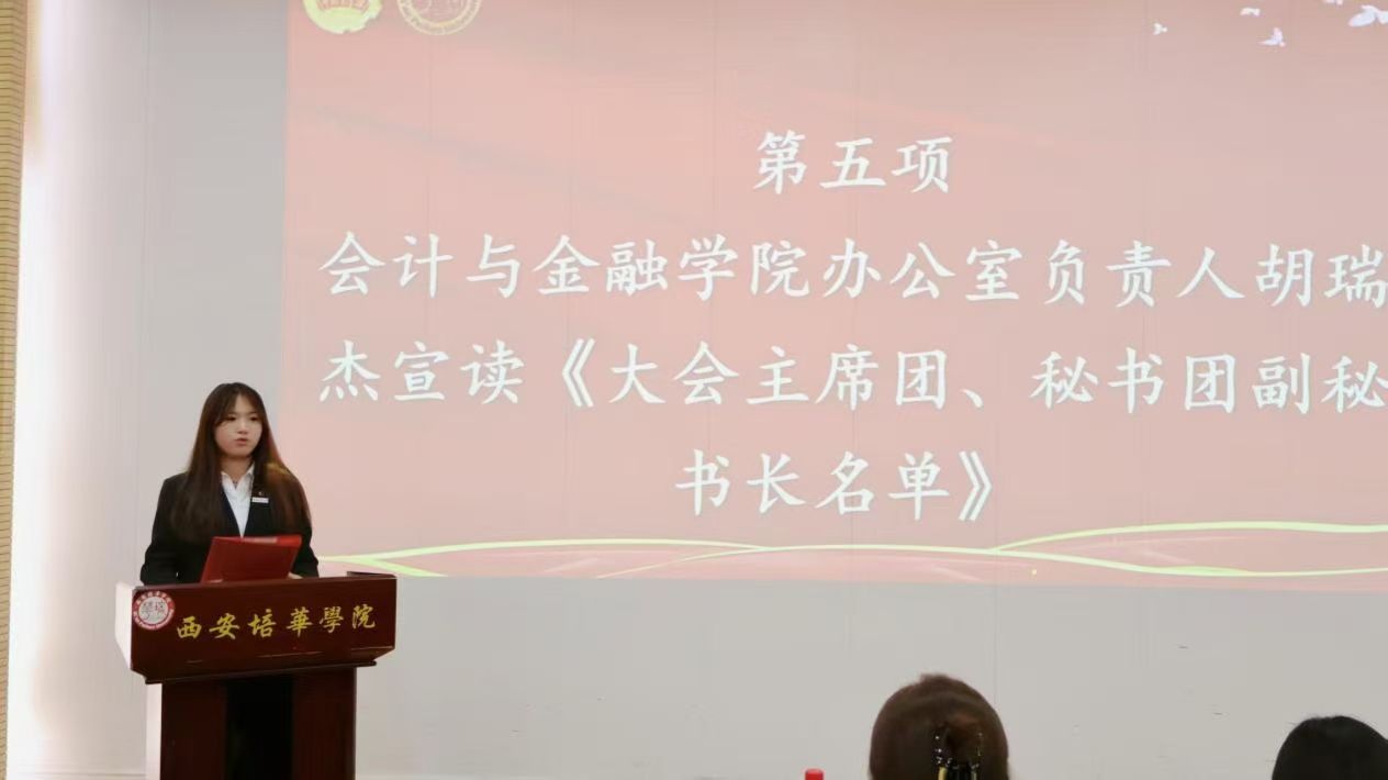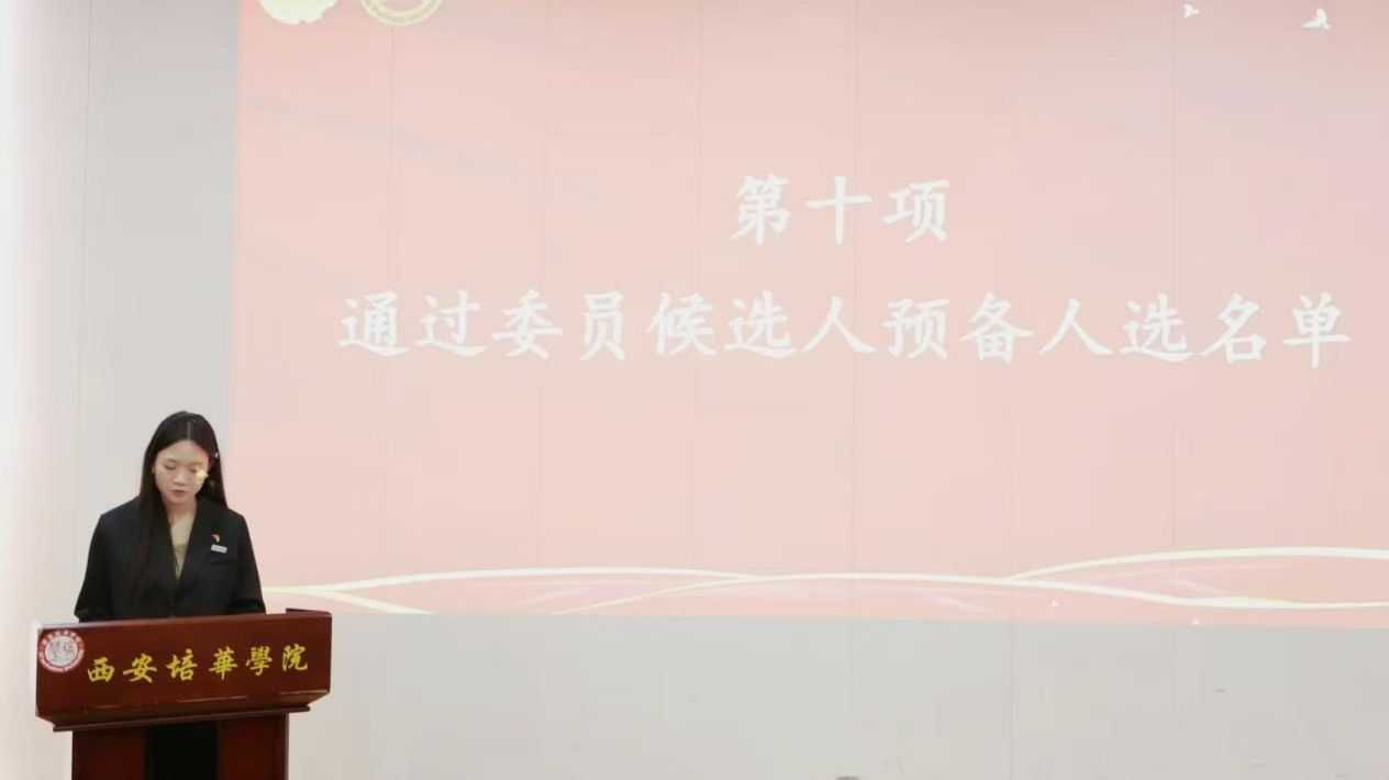 第一项:宣布西安培华学院会计与金融学院第四次学生代表大会常任代表委员会委员候选人名单、学生会委员会主席团成员候选人名单