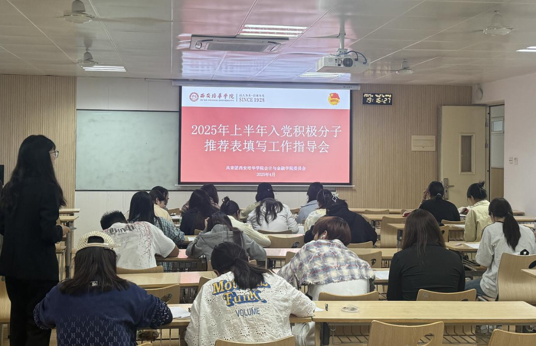 为贯彻高校团委关于加强共青团推优入党的工作精神,推动我院从严治团,增强团员意识,结合会计与金融学院的实际情况,我院团委于2025年4月27日在博远楼2616、2617、2618、2619教室组织第五十三期积极分子填写“入党积极分子推荐表”工作。本次活动由组织部负责人丁赛赛、李旭阳、李思彤、艾心雨主持。