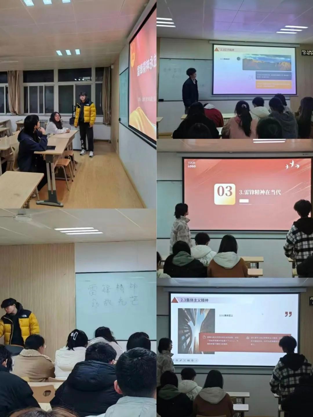 各团支部以生动形式开展雷锋精神学习主题团课,通过观看纪录片、情景模拟志愿服务场景、分享身边好人好事,让互助思想如春风化雨般在校园贯彻传扬。无论是用镜头捕捉瞬间、举办主题演讲,还是开展"学雷锋"志愿服务实践,都是为了让雷锋精神如种子般扎根心间,让助人成为下意识的温暖行动。这些宣传和活动虽有时限,但其播撒的善意种子,却在岁月里持续绽放芬芳。