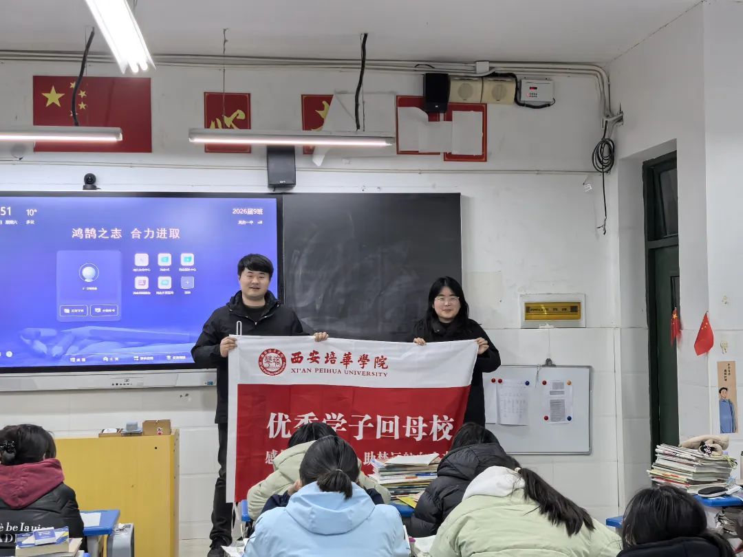 西安培华学院会金1队于2025年1月11日踏上了回访安徽省凤台第一中学的旅程,为母校的学弟学妹们带来了一场别开生面的高校宣传活动,拉开培华故事序幕,助力明晰未来。