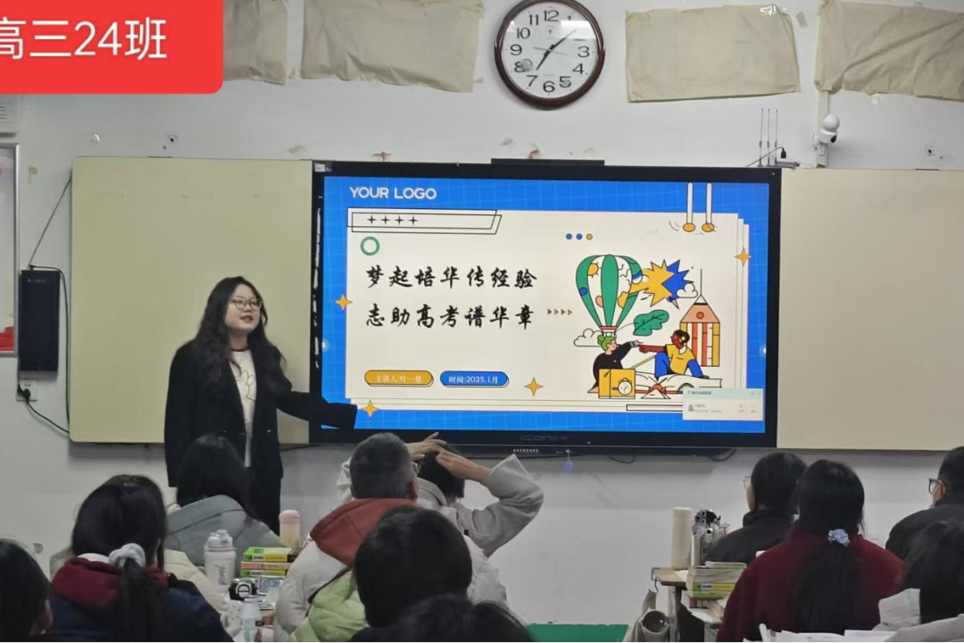 本次宣讲活动,首先进入的是高三24班。宣讲人叶一曼同学从“百年培华历史”“校园文化环境”“志愿填报指南”三个板块全方位地向高三学子们展示了培华学院的历史底蕴,师资力量,学科建设以及丰富多彩的校园生活。