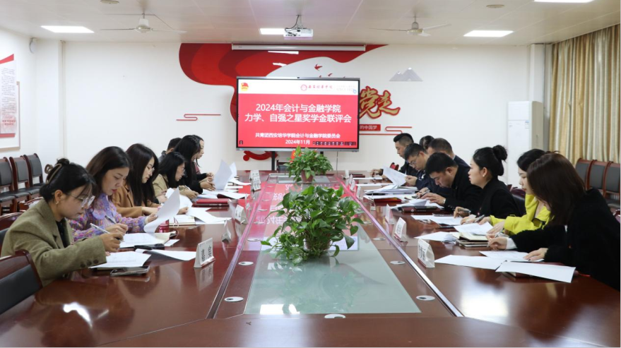 为充分发挥大学生榜样引领示范作用,深入挖掘、宣传培华青年积极进取、拼搏奋进的感人事迹和先进典型,在当代大学生中树立自强、自立的榜样,激励广大青年学生向榜样看齐、向榜样学习。会计与金融学院于2024年11月6日在2115会议室举行力学奖学金、自强之星奖学金院级评审会。此次评审会参选的学生共12名,其中参选力学奖学金评审的学生有7名,参选自强之星奖学金评审的学生有5名。会计与金融学院党委书记兼行政副院长刘斌,会计与金融学院党委副书记高乐,会计与金融学院团委书记寇方译,会计与金融学院团委副书记刘经纬以及全体辅导员老师出席并担任本次评审。