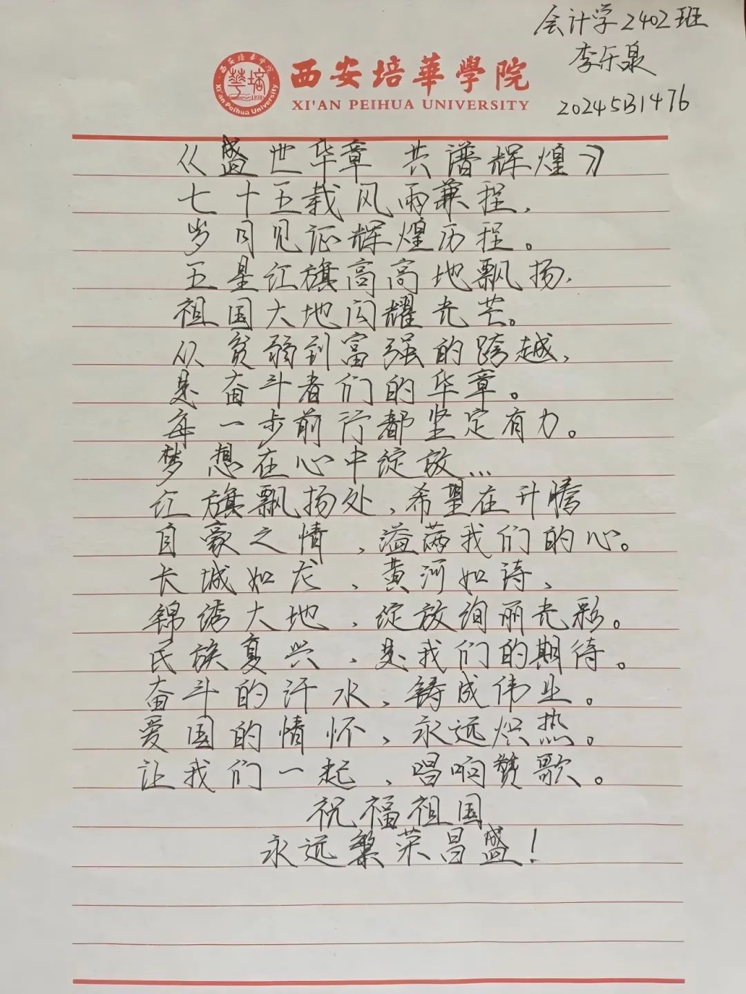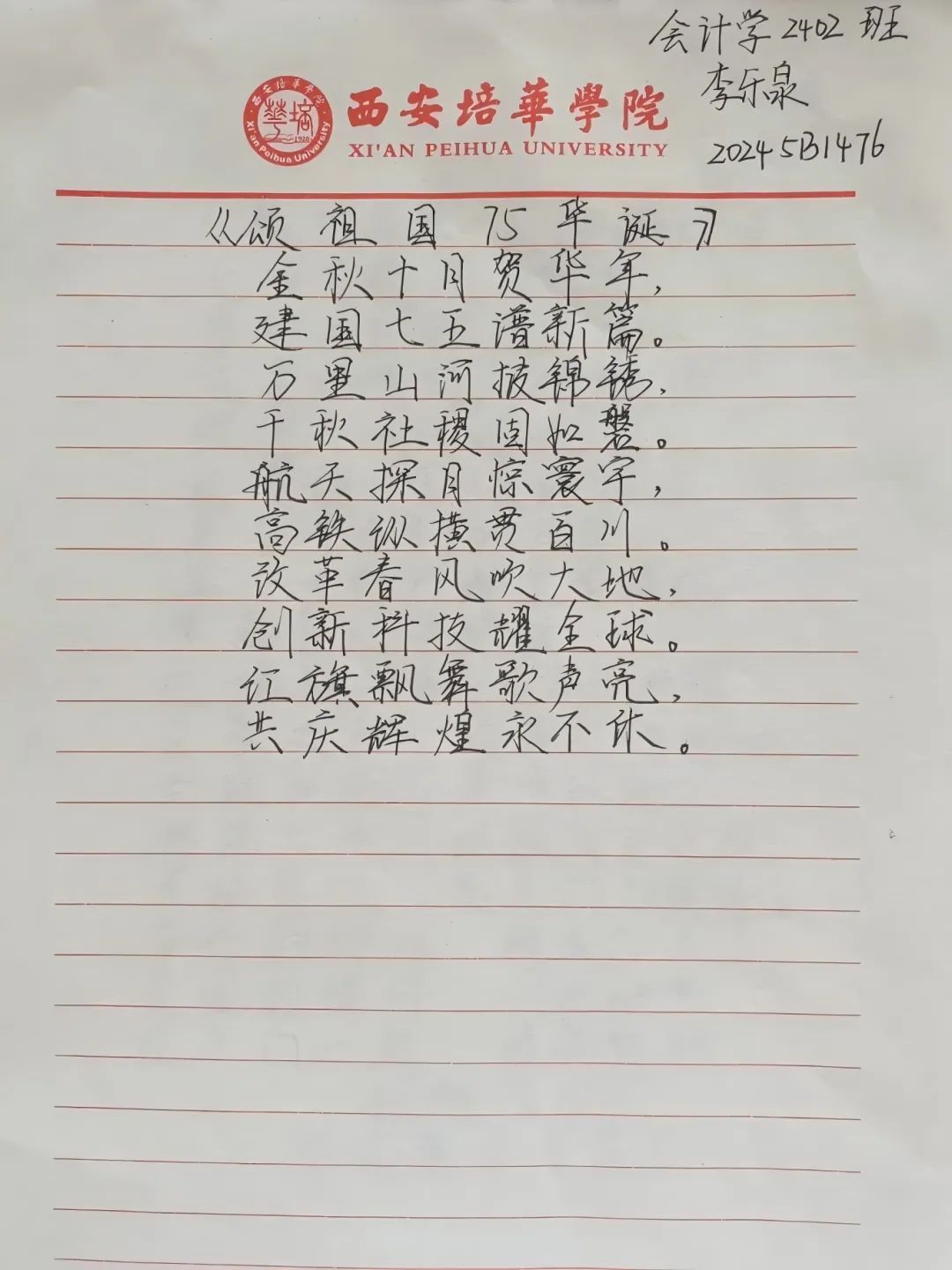 从同学们的视角聚焦新中国成立75周年伟大主题,歌颂祖国的繁荣发展和巨大变化,是我们新青年为祖国华诞献上的一份诚挚贺礼和美好的祝福!