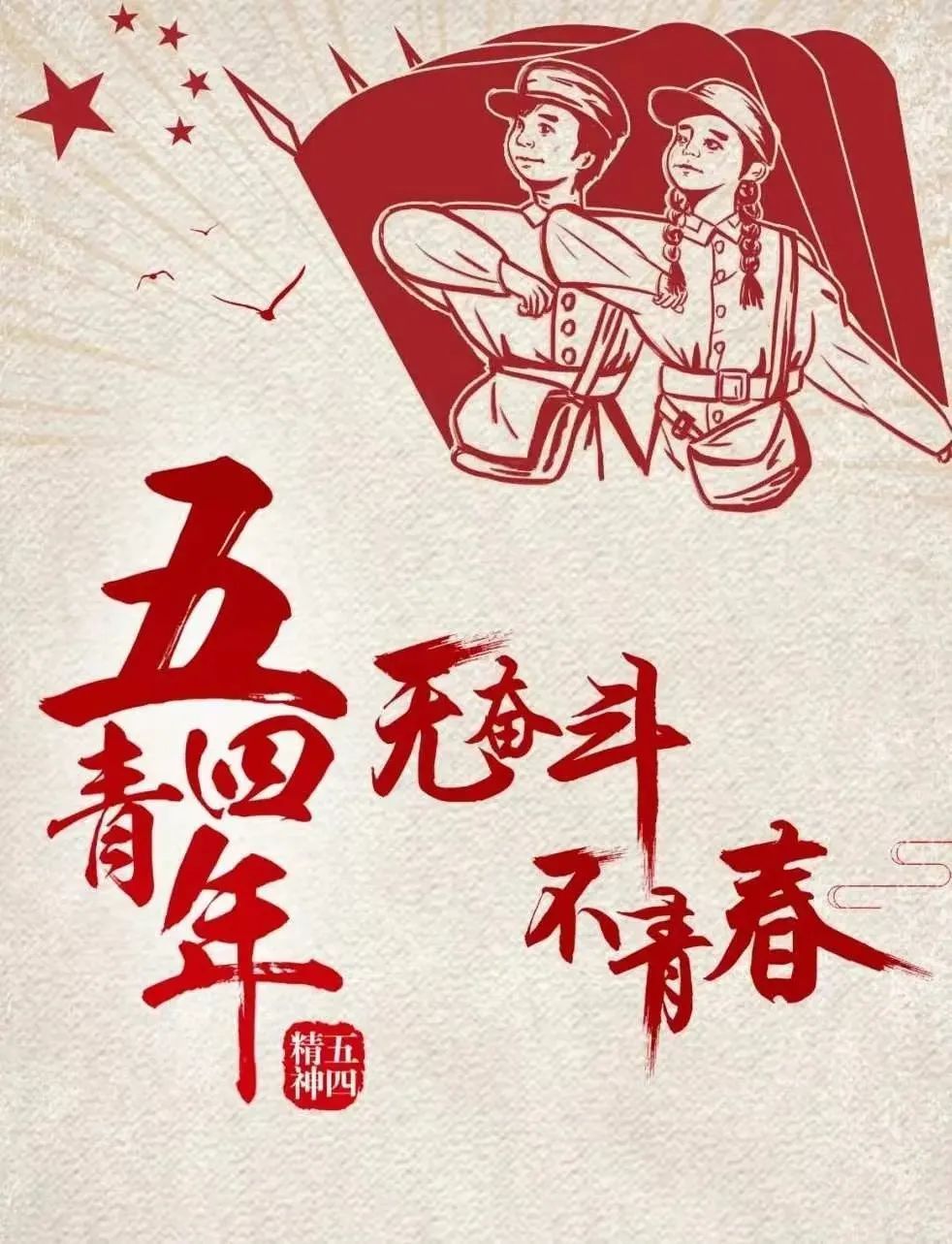 习近平总书记强调,今年是新中国成立75周年,是“五四运动”105周年。广大青年要继承和发扬五四精神,坚定不移听党话、跟党走,争做有理想、敢担当、能吃苦、肯奋斗的新时代好青年,在推进强国建设、民族复兴伟业中展现青春作为、彰显青春风采、贡献青春力量,奋力书写为中国式现代化挺膺担当的青春篇章。