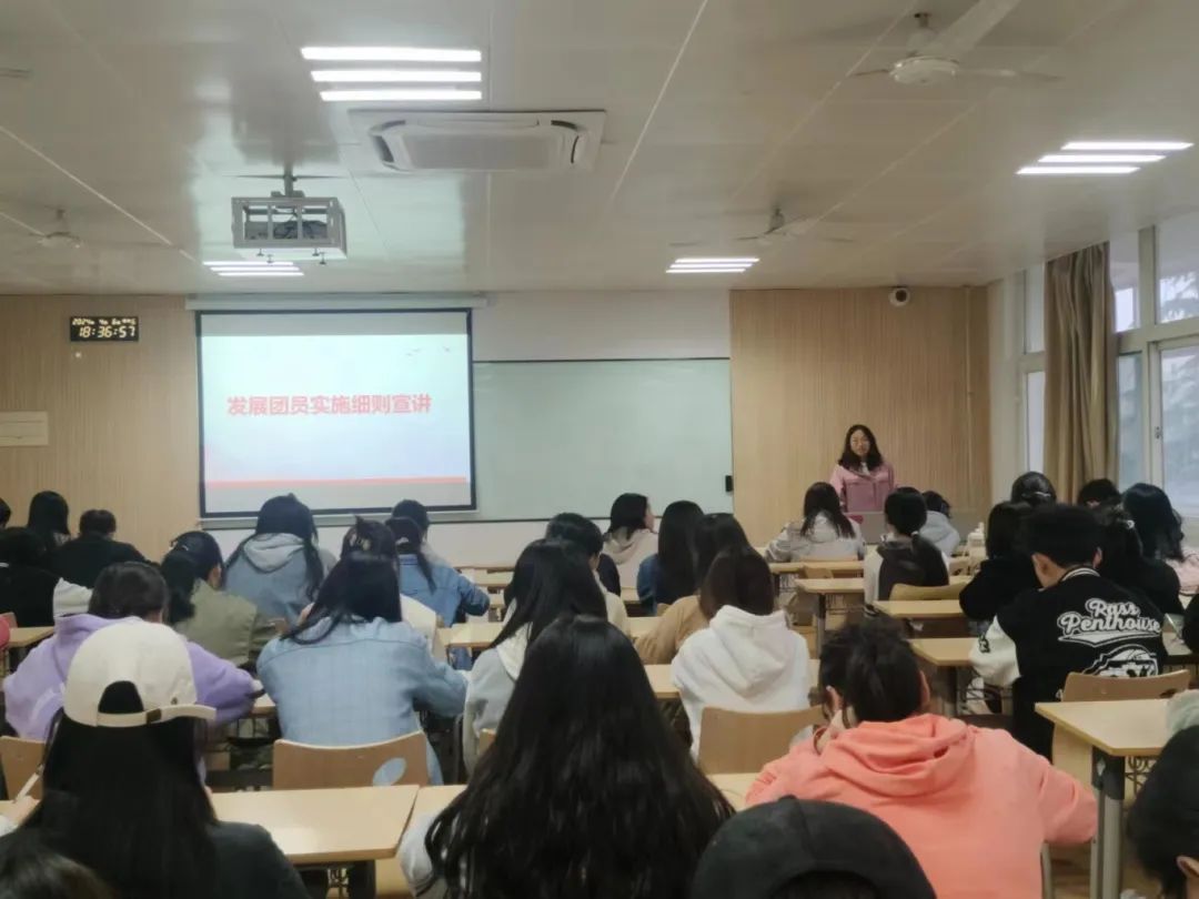 辅导员们在班级为同学们介绍了申请加入共青团员的基本条件,解释了关于发展团员的相关流程,同时也向同学们讲解了发展团员的考核标准。