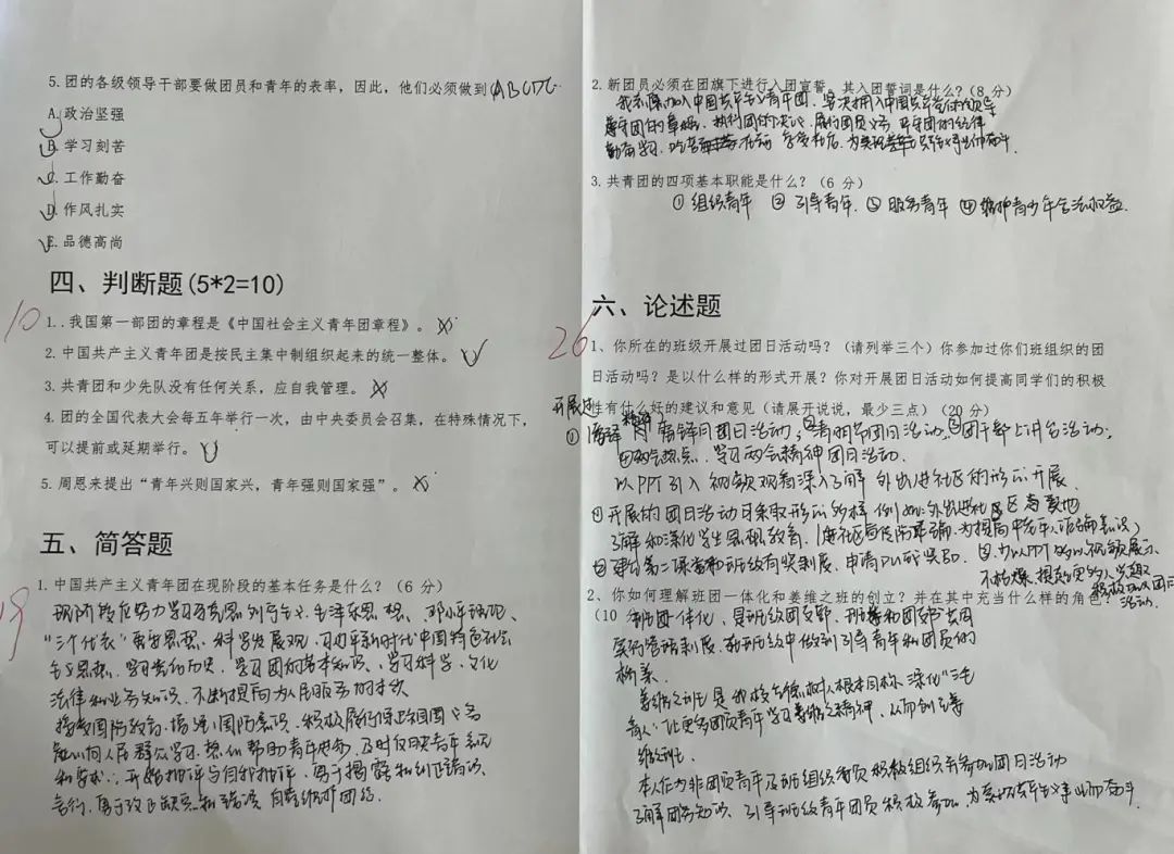 本次考试由院团委统一命题,采用闭卷方式进行,考试内容主要围绕习近平新时代中国特色社会主义思想,党团基础理论知识,社会主义核心价值观、团史、《团章》等内容。