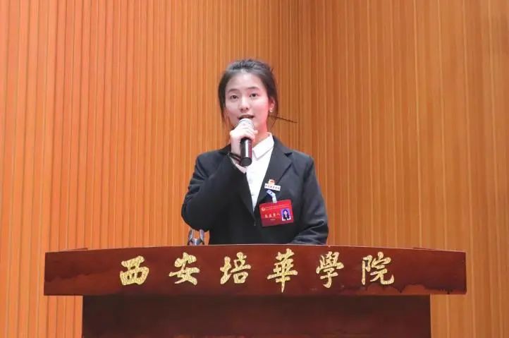 工作人员马诗漫做《西安培华学院会计与金融学院第二次学生代表大会提案》
