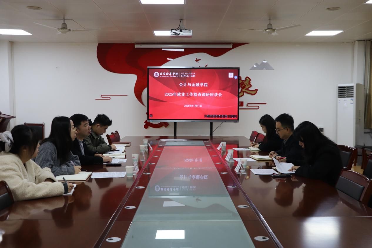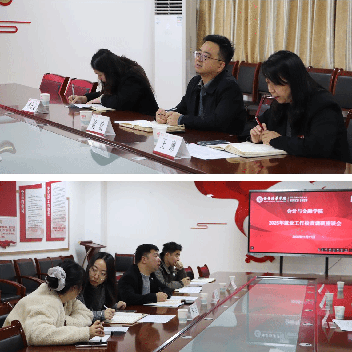 2025年11月11日上午10点,会计与金融学院2025年就业工作检查调研座谈会在博远楼2115会议室顺利召开。招生与就业指导中心主任姚斌、副主任王琳、就业办公室主管崔佳雯,会计与金融学院党委副书记高乐,学院2026届全体毕业班辅导员及2025届毕业班辅导员代表谢瑢参加了本次会议,共同为学院就业工作把脉问诊、出谋划策。