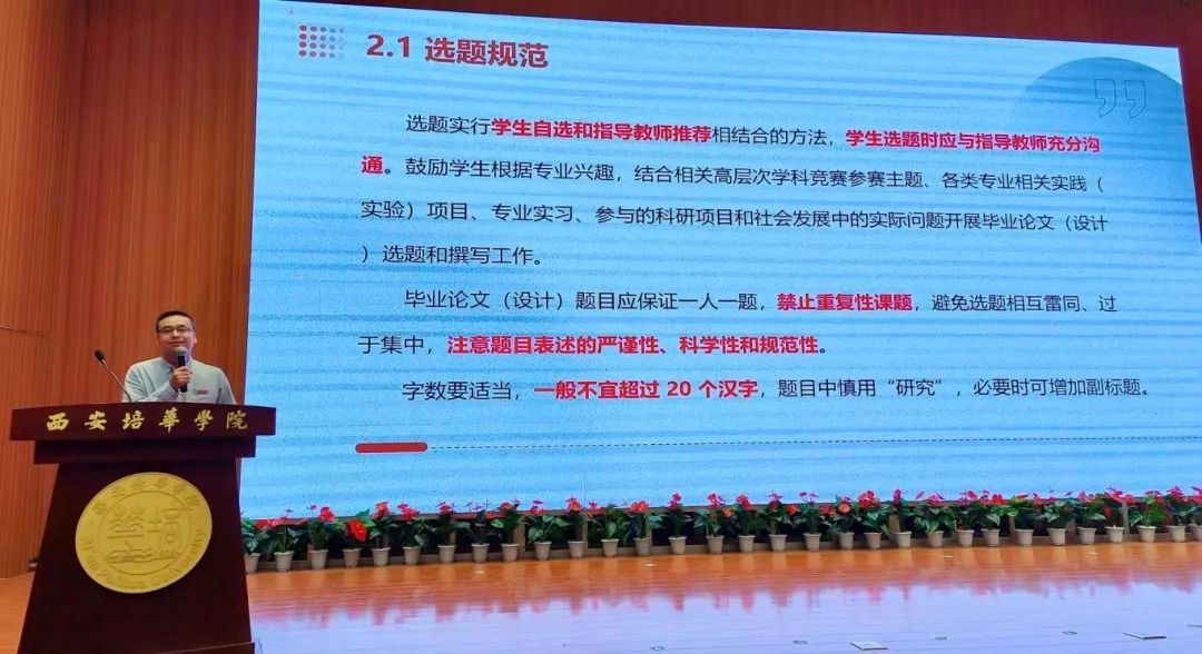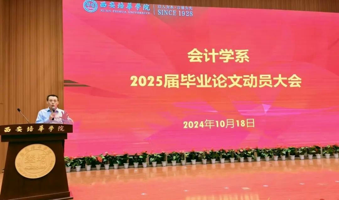 为保障毕业论文质量,规范毕业论文管理,加强学术诚信建设,2024年10月18日下午,西安培华学院会计与金融学院会计学系召开了2025届本科毕业论文动员大会。赵选民院长、孟君副院长、丁阳副院长、全体论文指导老师以及会计学专业2025届本科毕业生参加了本次动员会。