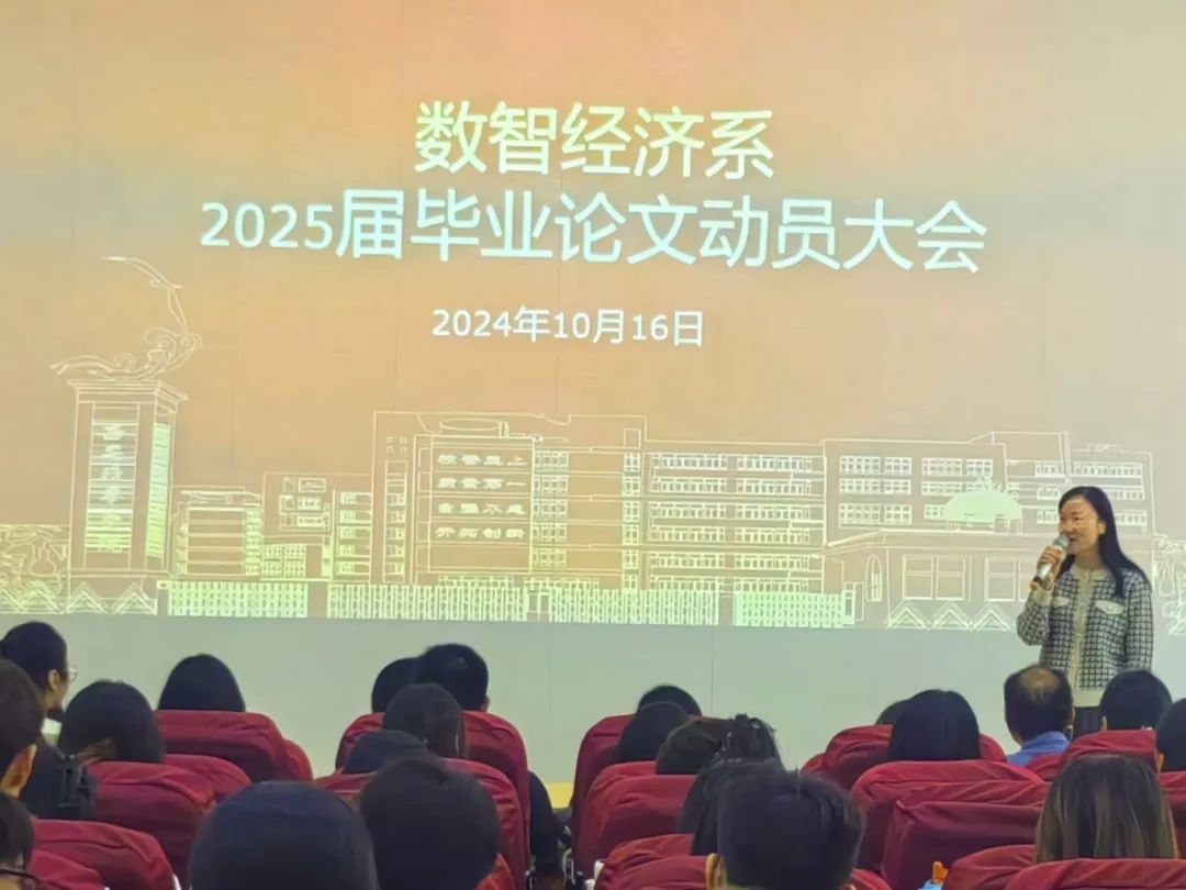 2024年10月16日在博远楼J201教室,会计与金融学院数智经济系召开2025届电子商务、市场营销、金融工程专业毕业论文动员大会。本次动员大会由数智经济系主任李亚子老师主持,会计与金融学院副院长孟君教授参加,电子商务专业带头人王艳老师、金融工程专业带头人吴春娜老师、杨柏欢老师进行讲解指导,2025届全体预毕业生参加。