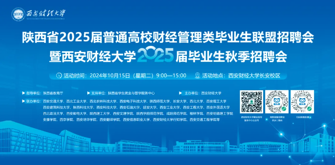 为进一步做好2024届全省高校毕业生就业工作,为财经管理类毕业生提供更多的就业岗位和就业机会,经陕西省教育厅同意,西安财经大学定于2024年10月15日召开“陕西省2025届普通高校财经管理类毕业生联盟招聘会暨西安财经大学2025届毕业生秋季招聘会”,此次招聘会共提供招聘单位260余家。西安培华学院作为联办单位也在受邀参会范围之中。