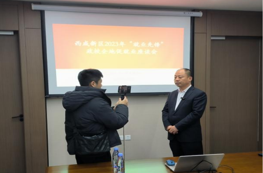 招聘会期间,史立军副院长和刘斌副书记受邀参加了西咸新区2023年“就业先锋”政校企地促就业座谈会,会议期间西咸新区人社民政局副局长赵宏庆对我院支持秦创原发展,带领师生参加本次招聘表示欢迎。