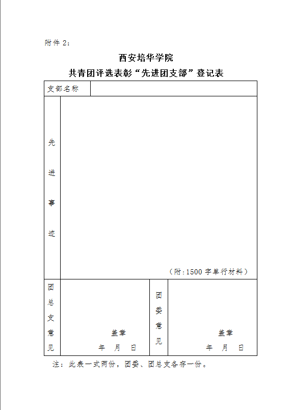 附件2:西安培华学院共青团评选表彰“先进团支部”登记表