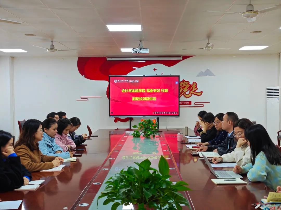为大力弘扬教育家精神,持续加强党员教师队伍的师德师风建设,强化躬耕教坛的教育担当,学习贯彻全国教育大会精神和《中共中央国务院关于弘扬教育家精神加强新时代高素质专业化教师队伍建设意见》要求。10月21日中午,管理系组织开展了支部书记讲师德师风专题党课活动,以“教育强国,教师何为”主题开展主题研讨活动。会计与金融学院行政副院长刘斌也莅临了本次专题学习研讨活动。