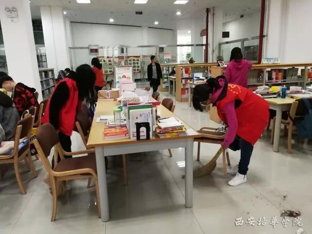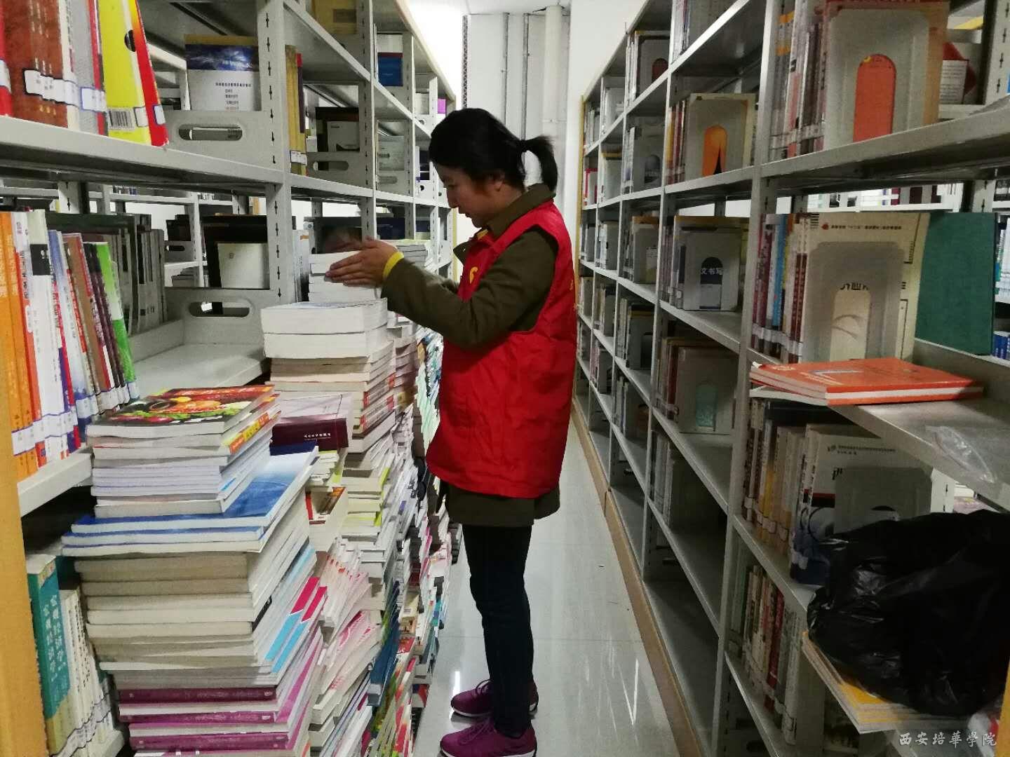 10月10日下午,我校人文学院青年志愿者协会校内雷锋服务队16名同学在图书馆进行义务活动。