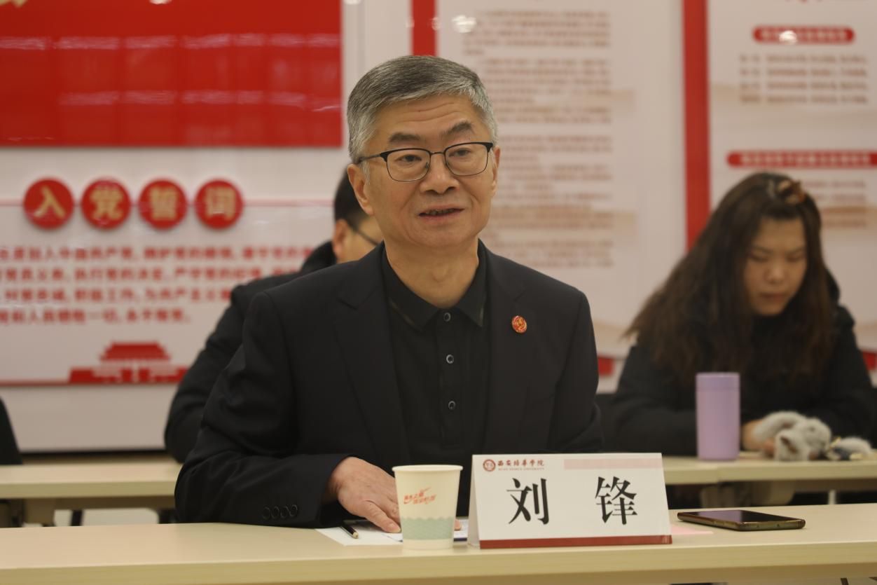 2025年12月22日15:30,西安培华学院与陕西省延安精神研究会调研座谈会在博远楼2501B会议室召开。陕西省延安精神研究会副会长兼高校企业委员会主任、陕西省委巡视组原组长郑仲,研究会副秘书长兼办公室副主任李季,工作人员牛荣超一行莅临调研;西安培华学院党委书记、政府督导专员刘锋,马克思主义学院党总支书记寇军强,学工部副部长杨媛,党工部部长助理王萌,团委书记董莹,宣传部业务主管吕晓东,苏成君及6名思政教师代表参加座谈。