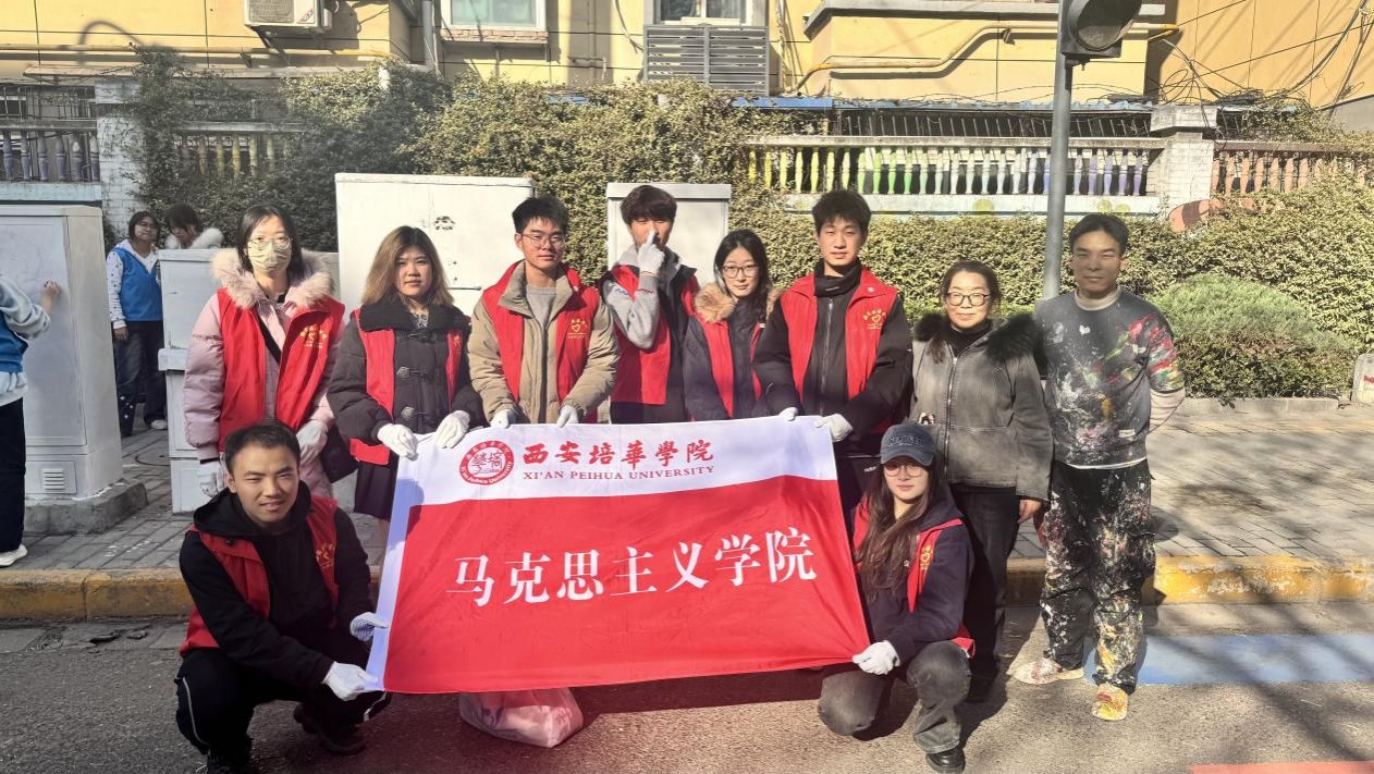 2025年11月21日,西安培华学院马克思主义学院杨志梅老师组织2024汉本英才班学子及社团志愿者,赴西安市新城区通济坊小学周边开展井盖与电箱彩绘志愿服务。活动以美化城市公共空间为切入点,以校社联动为纽带,以美育浸润为延伸,面向社区实际需求,整合高校专业资源与青年志愿力量,用实际行动践行奉献友爱互助进步的志愿精神,展现新时代青年的责任与风采,为城市文明建设注入青春动能。