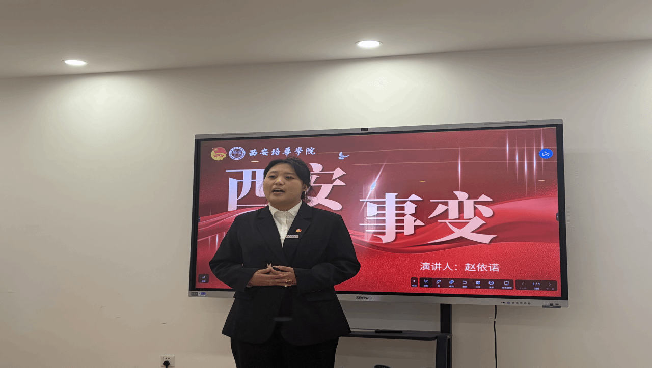 比赛过程中,马克思主义学院办公室主任刘琼、德法教研室主任沈永真副教授、西安培华学院红色长廊宣讲员郑禹晞、韩雅雯等老师组成的评委团,严格按照主题内容、语言表达、仪态台风、综合效果四项评分标准进行专业、公正的现场打分,细致考量选手的演讲表现与综合素养。