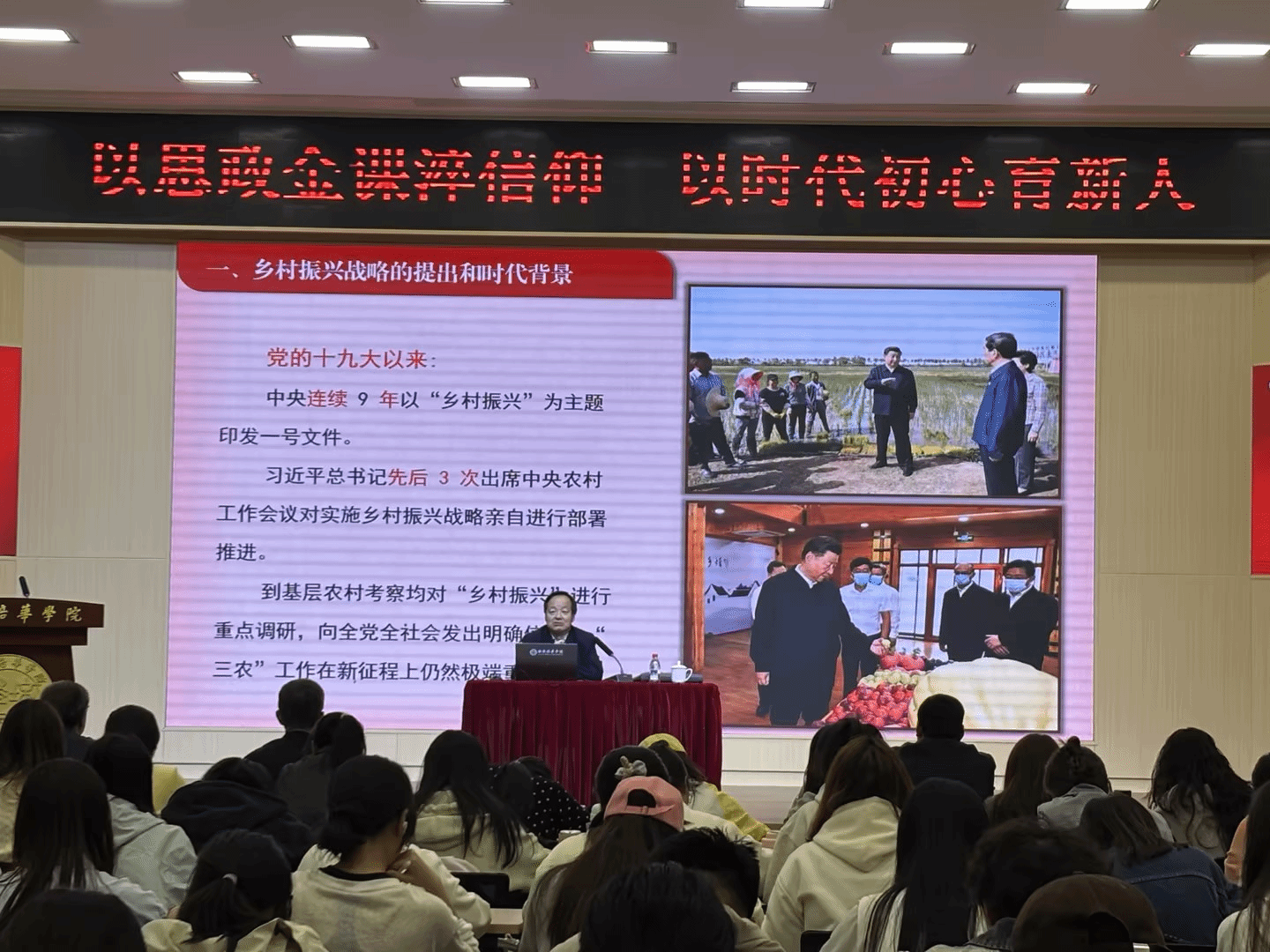 为深入贯彻落实习近平总书记对学校思政课建设的重要讲话和重要指示精神,全面落实立德树人根本任务,为深入贯彻落实省委教育工委关于省级领导讲思政课的部署要求,4月2日下午,省农业农村厅一级巡视员贺军平走进我校明德楼报告厅,以《陕西全面推进乡村振兴的形势与任务》为题,为马克思主义学院师生讲授专题思政金课。党委副书记蔡亮、马克思主义学院教学副院赵延安、马克思主义学院教师、学生代表共200余人参加了此次授课。活动由校党委书记刘锋主持。