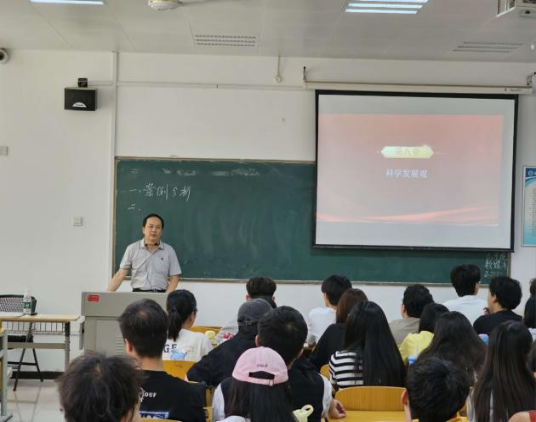 2025年6月9日下午14:00 - 15:50,西安培华学院副校长胡俊生走进汇知楼6401教室的《毛泽东思想和中国特色社会主义理论体系概论》课堂,为播音主持专业2301、2302班的学生带来了一堂生动且富有深度的思政课。此次授课聚焦第八章科学发展观,旨在引导学生深入理解这一重要理论的内涵与价值。