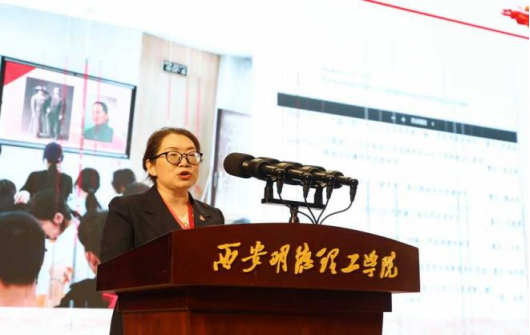 我校马克思主义学院教师代表杨志梅作了题为“传承红色文化基因,推动思政课内涵式发展”的发言。讲述西安培华学院创办于 1928年,是西北地区成立较早的民办学校之一,1938年建立第一个党支部,七迁校址,九易其名,红色基因、女性教育、职业教育是其三大基因,学校因民族救亡而生,为国家富强而兴。因此马克思主义学院以课程建设构建“三位一体”红色育人体系。首先利用"红色文化长廊",校史馆、爱国广场等实施场馆教学,打造沉浸式实践教学。其次创新"四史"教育课程体系。以课程为抓手,挖掘校史中红色基因 ,将校史馆中珍藏的抗战时期地下党组织活动的珍贵史料转化为教学案例。马克思主义学院以教学科研来构筑红色文化研究高地。依靠陕西省红色文化研究院和陕西三秦儿女红色宣讲团,“红色文化进校园 革命后代讲家风”。依托马克思主义学院成立西安培华学院中共党史研究所,深化党史教育研究。设立"红色文化育人"专项基金,推进思政专项研究。马克思主义学院更用实践活动打造立体化红色育人矩阵,创新"三下乡"实践模式,培育思政精品项目,拓展社区教育服务。最后以光明日报报道我校毕业生“到西部去,我盼着出发的日子”振奋人心的案例作为结束语。